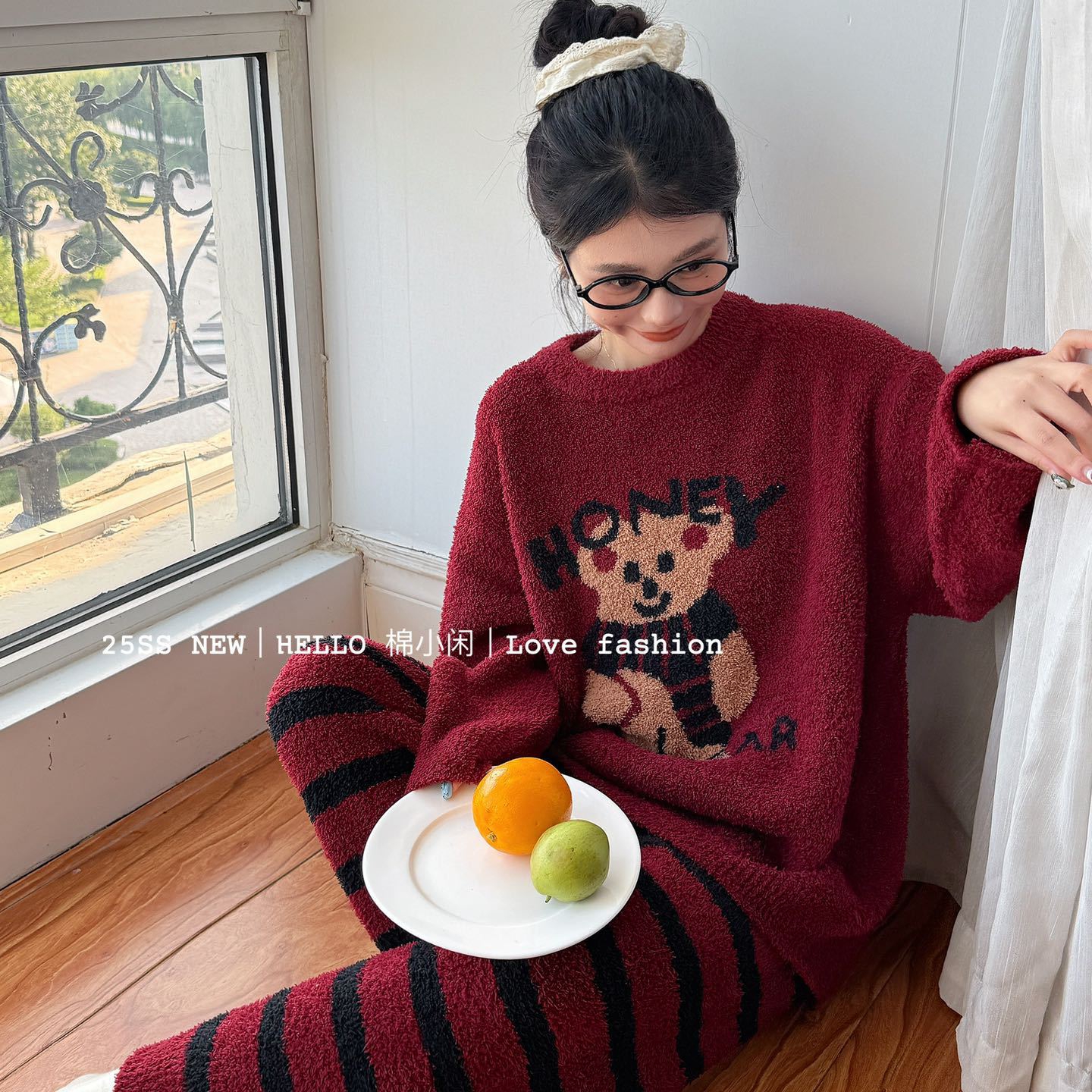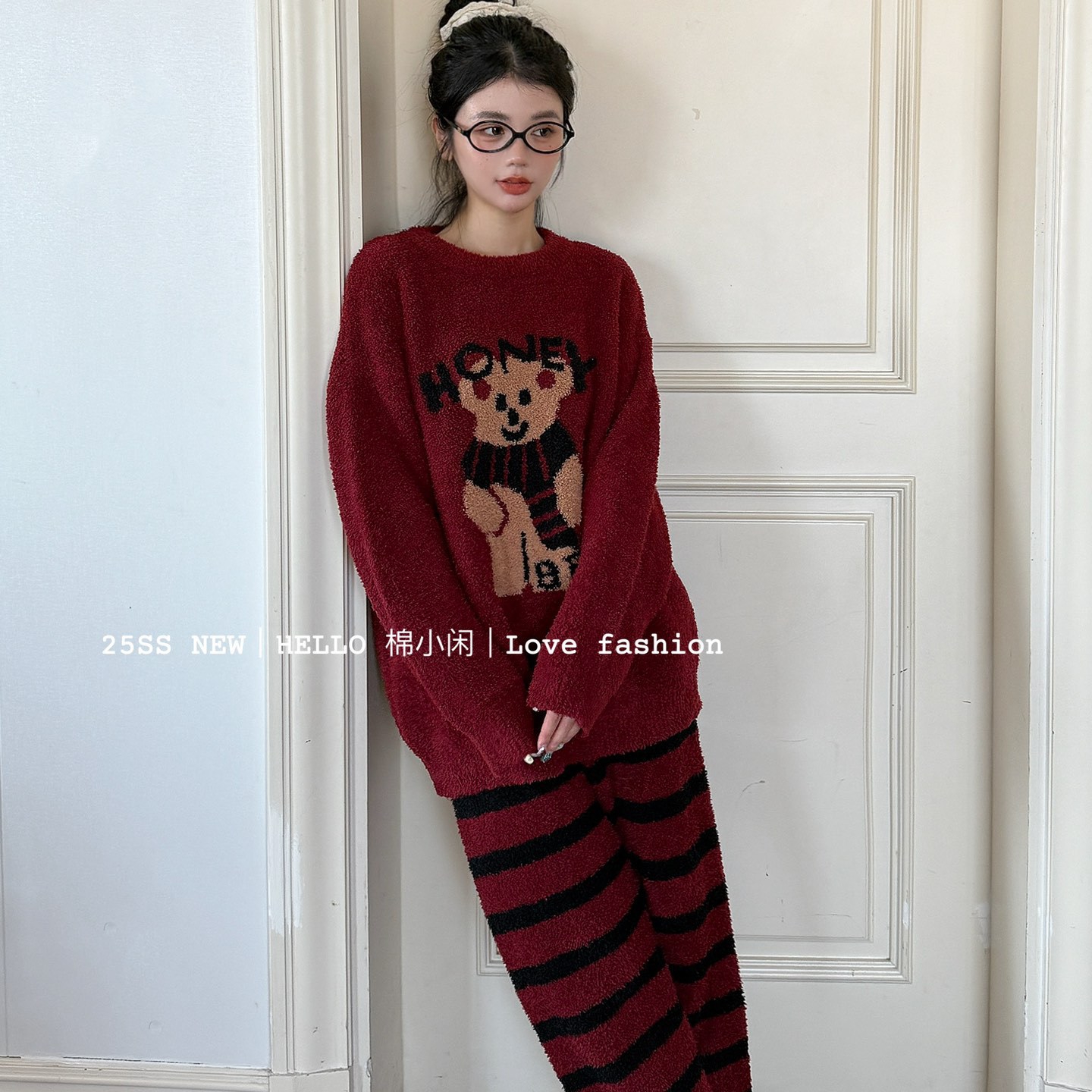 (总)妍景家居生活馆 2026新款软绵绵条纹熊先生红家居服睡衣套装