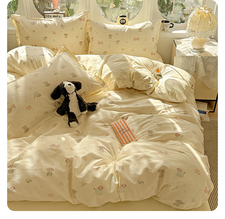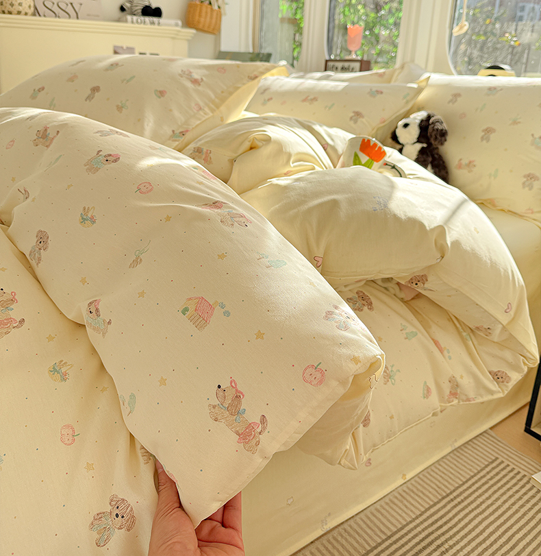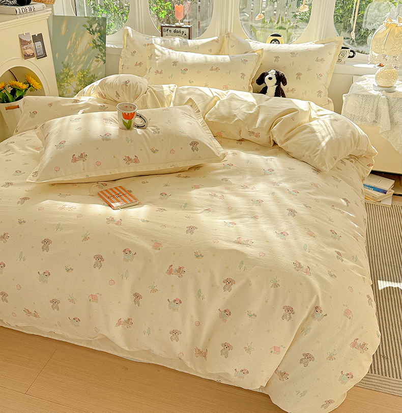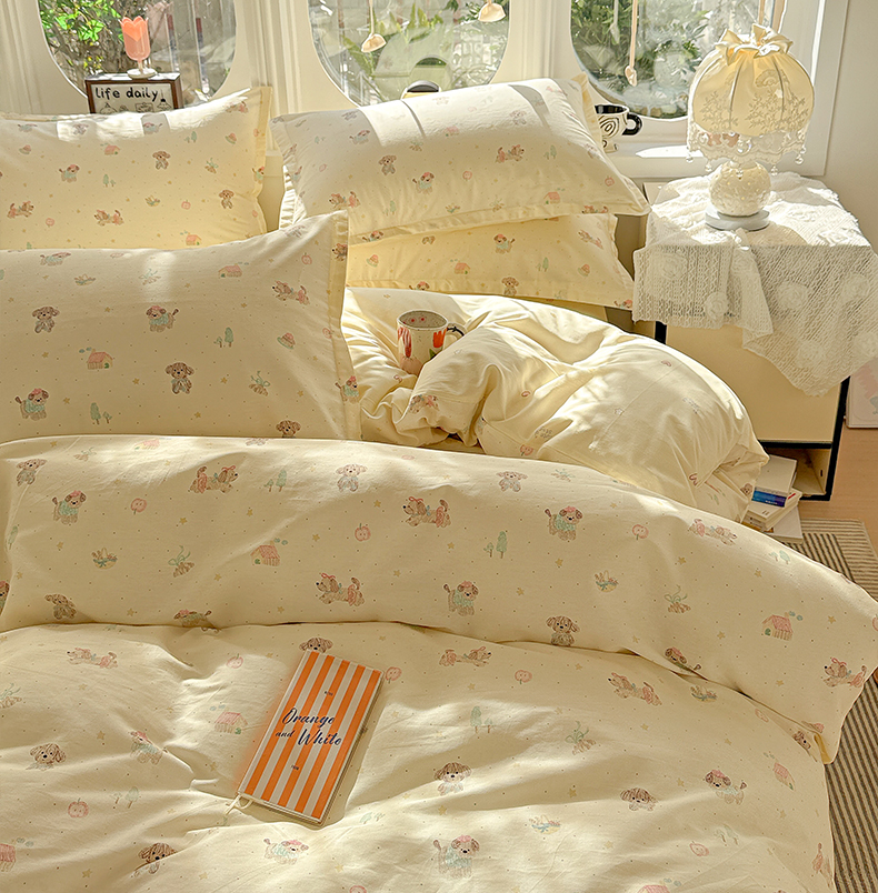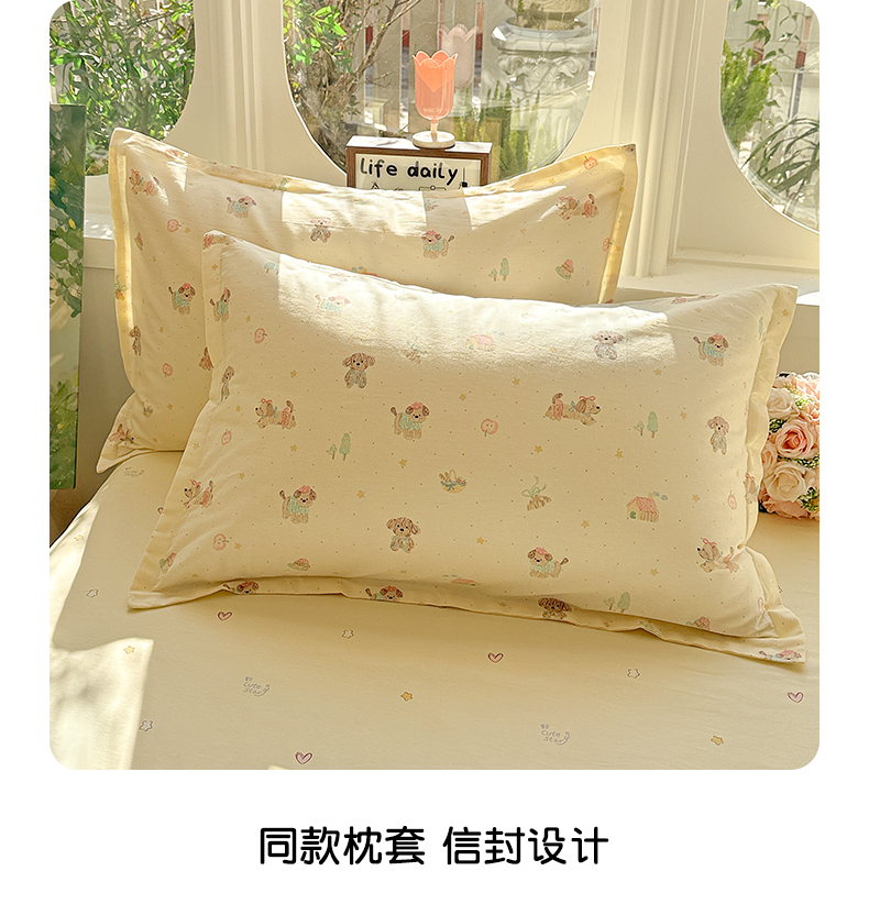 当前位置: 91家纺网 > 商品网购 > 床品套件 > 四件套 > 全棉普通四件套 > 卡普纯棉全棉四件套13070喷气床单款床笠款三件套 彩绘汪汪