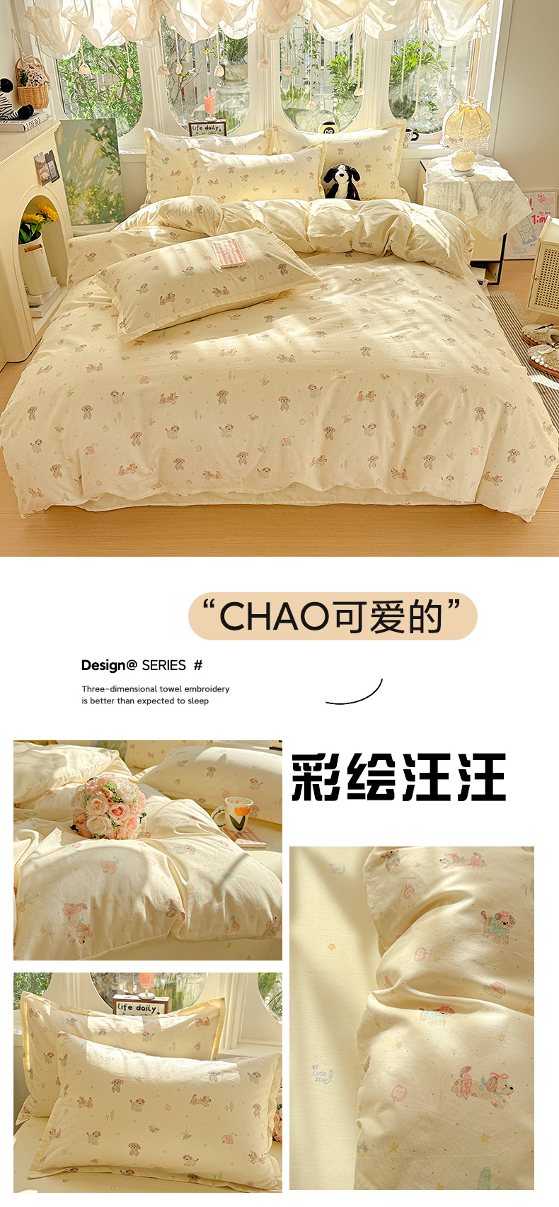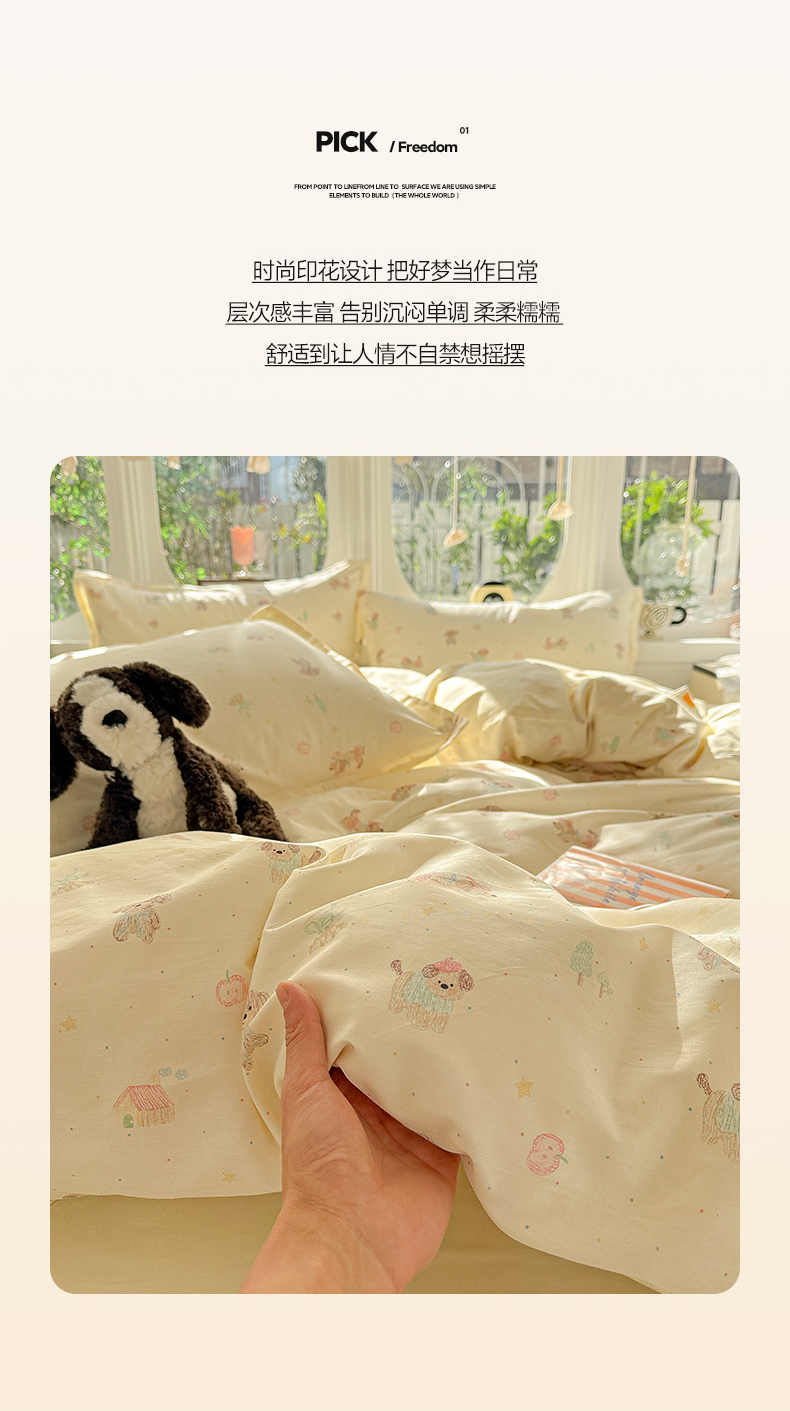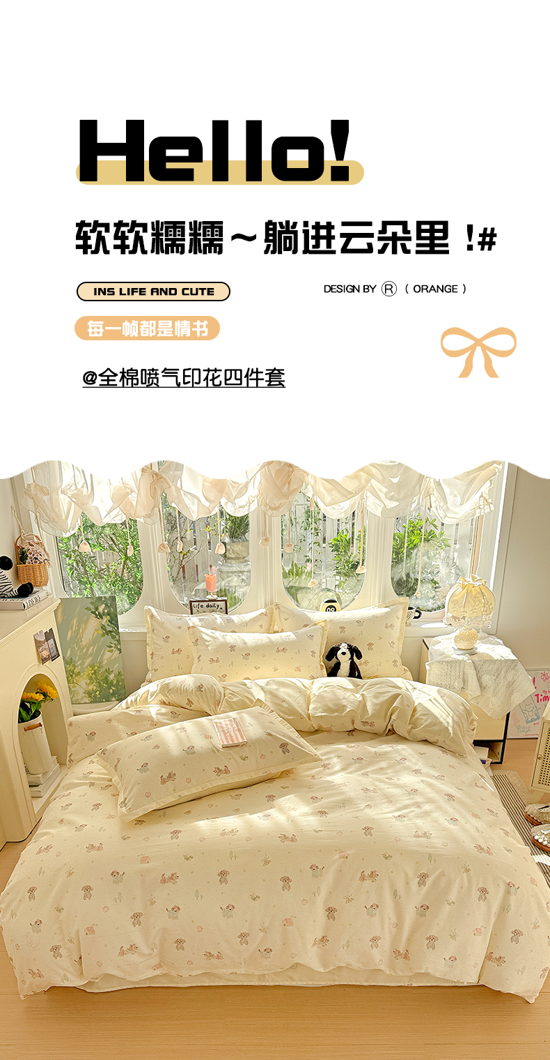 当前位置: 91家纺网 > 商品网购 > 床品套件 > 四件套 > 全棉普通四件套 > 卡普纯棉全棉四件套13070喷气床单款床笠款三件套 彩绘汪汪
