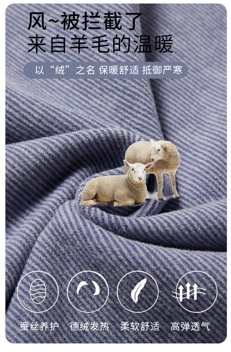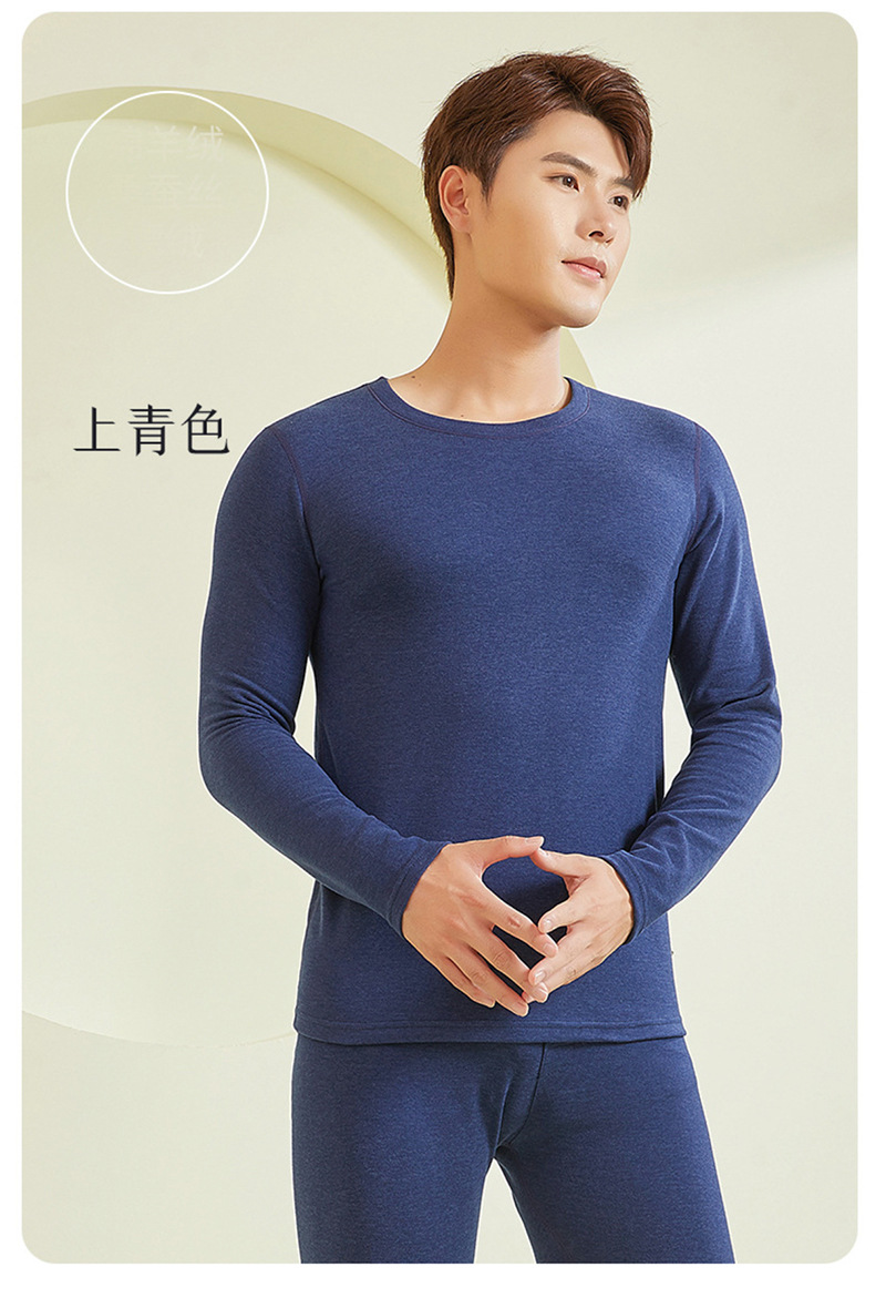 商品名称:良品汇馆 2026新款【加厚德绒男内衣】德绒保暖内衣圆领男士秋衣秋裤套装羊毛蚕丝加厚新款 德绒男-浅灰