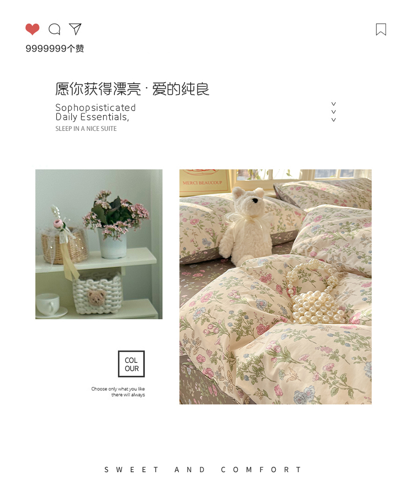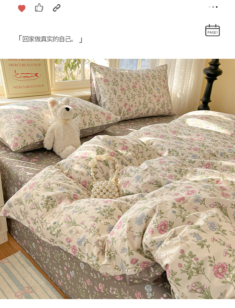 当前位置: 91家纺网 > 商品网购 > 床品套件 > 四件套 > 全棉普通四件套 > 瑞莱 2026新款全棉印花13070花卉系列四件套 此间春色