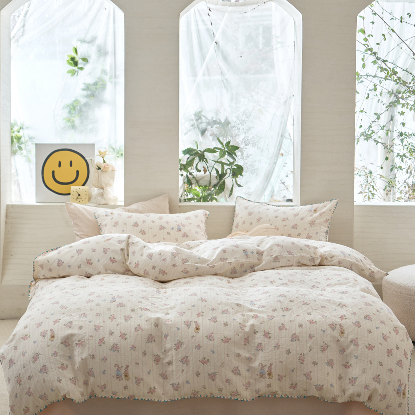 (总)洋铭区(原狠狠爱) 2026新款春季全棉彩边双层纱四件套,爱心宝莉,波斯小懒狗,繁花兔兔,格格小熊,海蓝小木马,红格小马,红枣小兔,花朵兔兔,焦糖小熊,兰花香,绿芽小马,萌宠小分队,奶茶蝴蝶结,奶糕熊熊,汽车派对,桃桃粉花,甜果小象,图图小狮子,幸运小可爱,熊猫嘟嘟,遇见粉花,月光宝宝