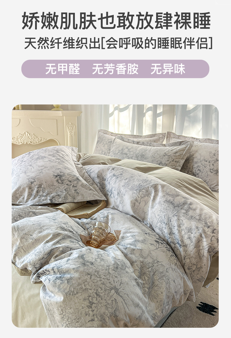 典曼家纺 2026新款纯棉花卉系列全棉印花四件套 清珞-灰
