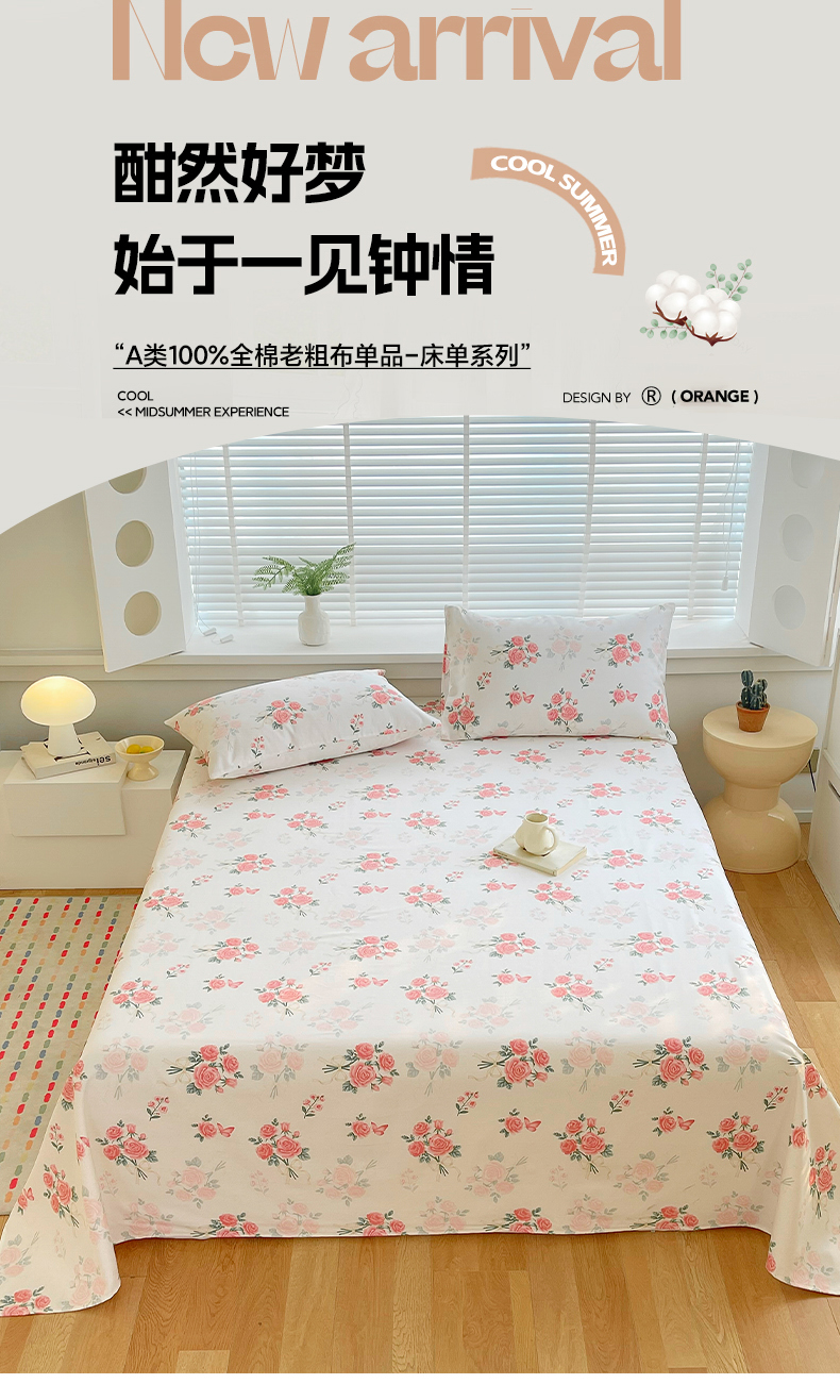 (总)爱彼家纺 2026新款升级细沙印花老粗布床单单品床单床单单件-细沙系列四,花笺,花漾手礼,花屿南瓜,蓝花序,蓝菊绘,山河日立,甜心