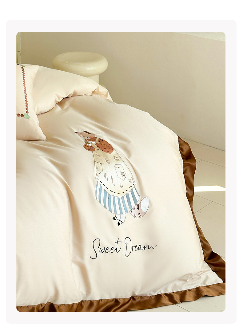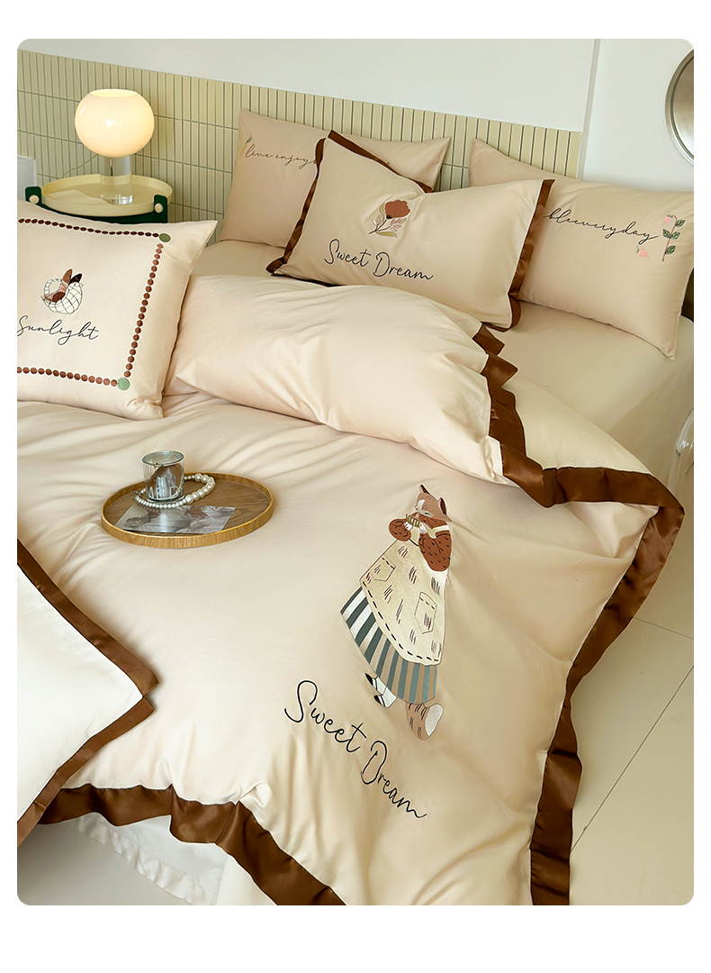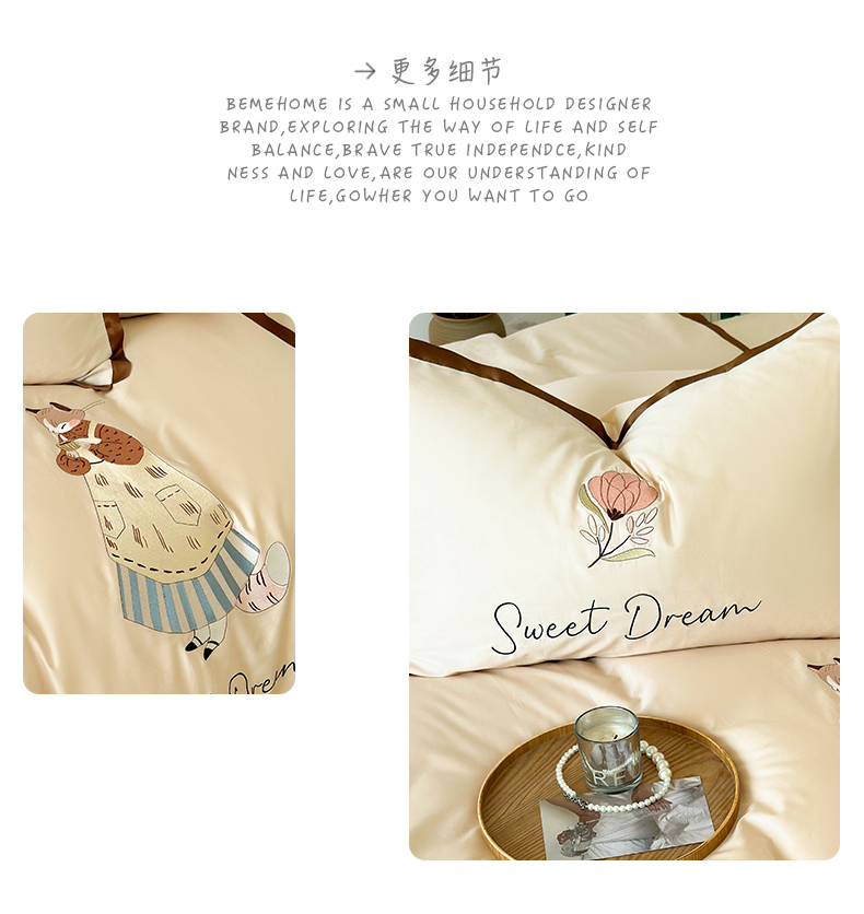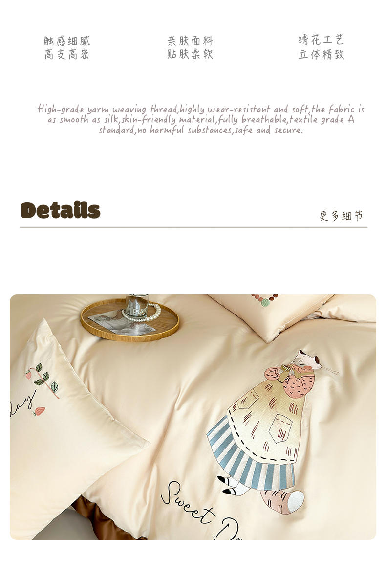 (总)波比可可 2026新款50s长绒棉纯棉全棉居家轻奢刺绣四件套,小比熊,花卉,咖啡猫,快乐狗,快乐喵,礼物,兔子