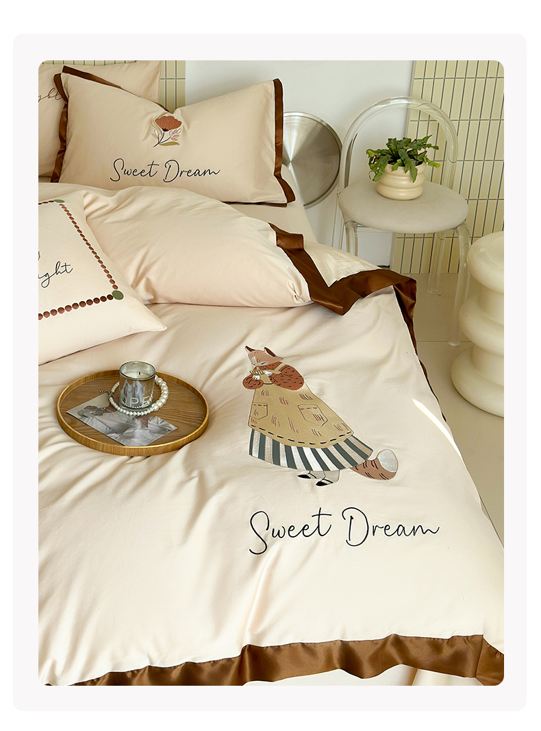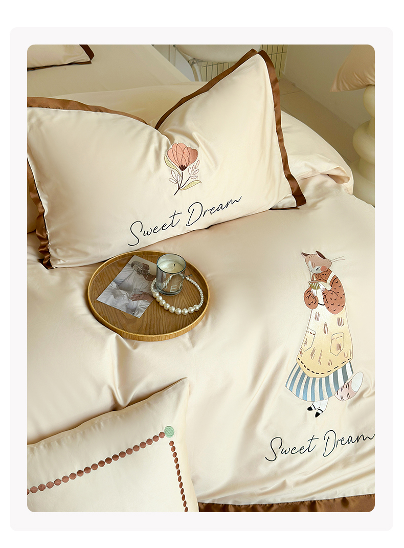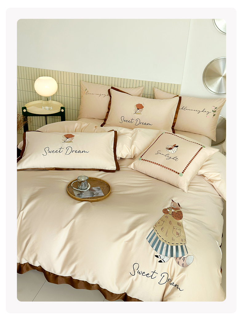 波比可可 2026新款50s长绒棉纯棉全棉居家轻奢刺绣四件套 咖啡猫