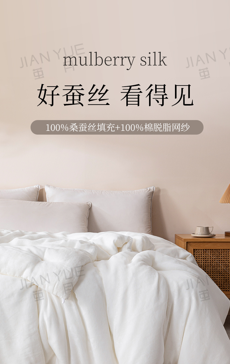 (总)茧月家纺 2025新款纯蚕丝被 中长丝 国标一等品,白色