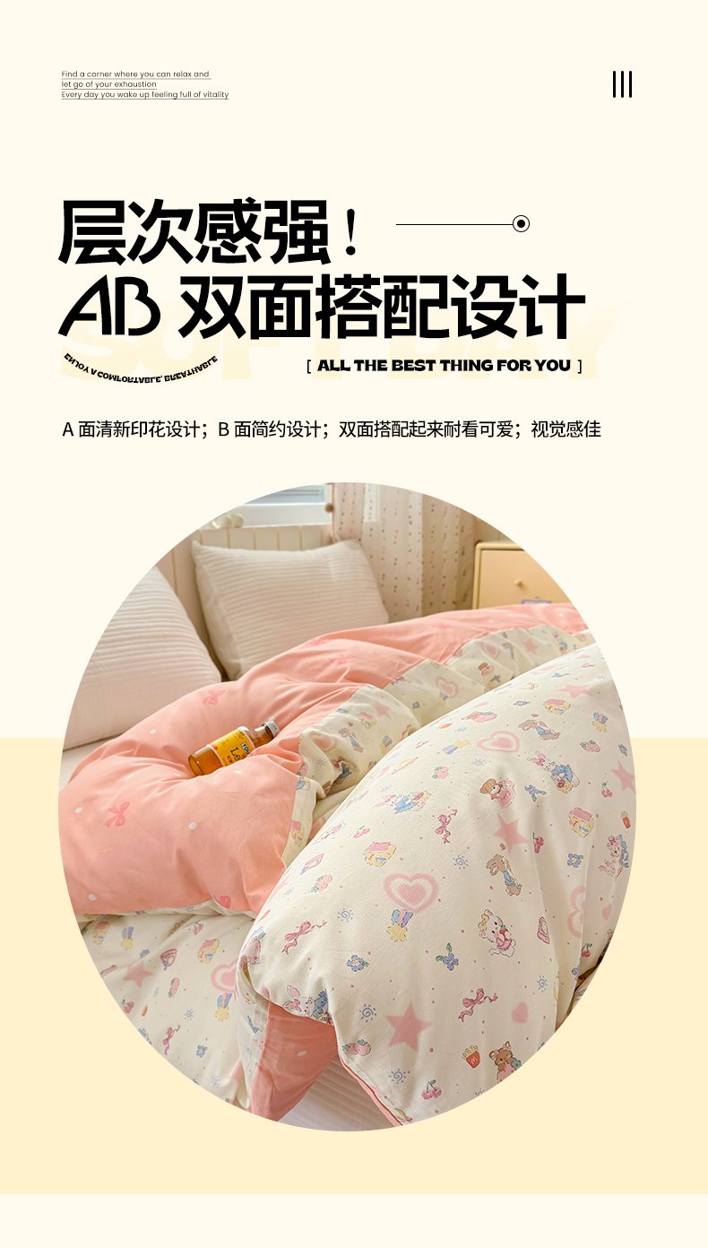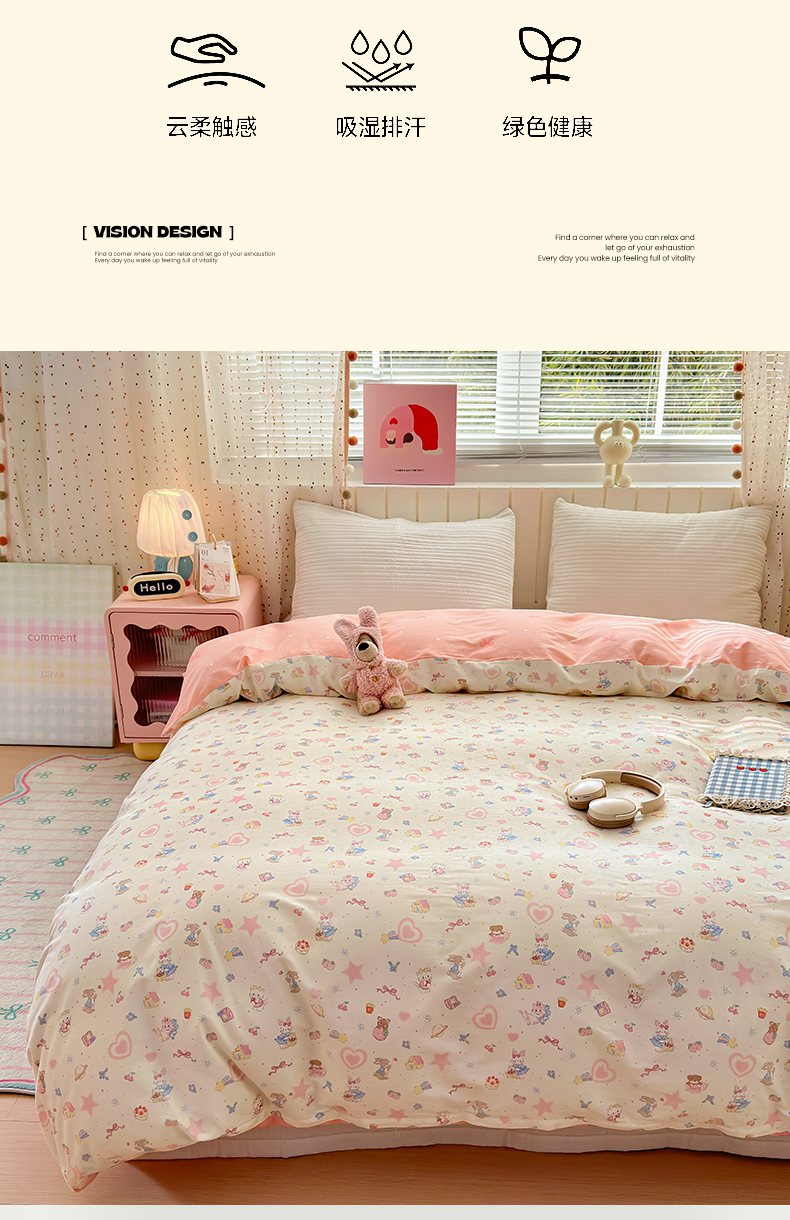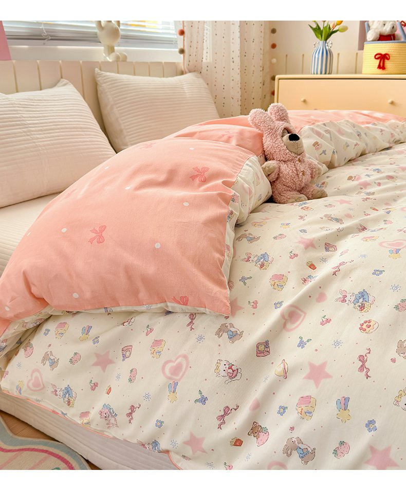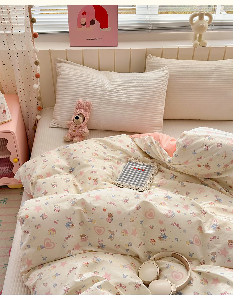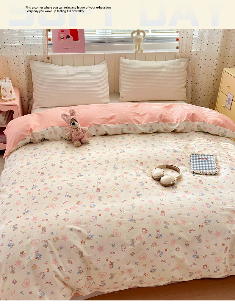 • 91家纺网 家纺一手货源 找家纺 (总)梵克保罗 2026春夏新款ins小清新40支全棉13372四件套学生三件套单被套单枕套系列-第三批(四件套),告白兔,科罗娜,栗子狗,麦克狮,千代-兰,小象之家-粉,小象之家-兰,摘星小熊,QQ乐园