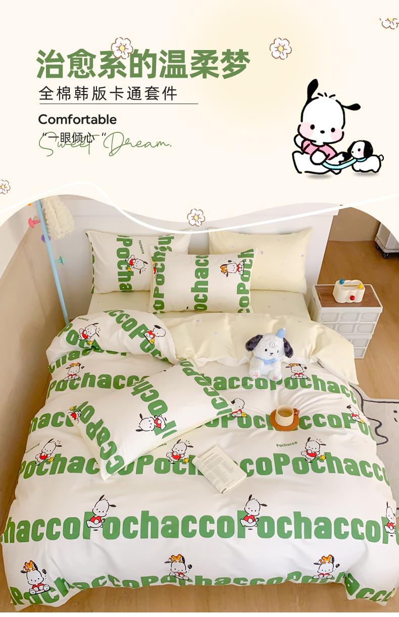 当前位置: 91家纺网 > 商品网购 > 床品套件 > 四件套 > 全棉普通四件套 > 玉元坊 2026新款正版授权三丽鸥系列全棉纯棉床单四件套学生三件套-大耳狗帕恰狗布丁狗系列 字母帕恰狗【简约款】