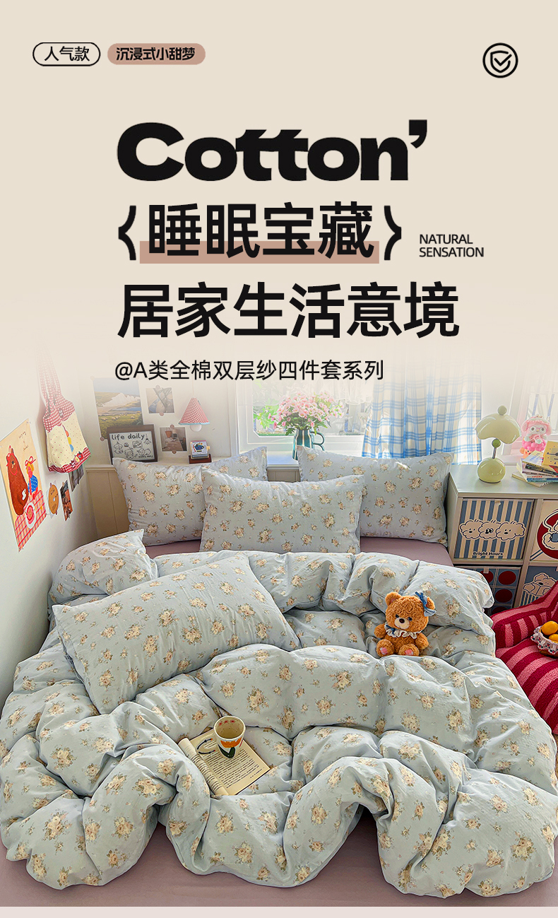 当前位置: 91家纺网 > 商品网购 > 床品套件 > 四件套 > 全棉普通四件套 > 焱博家纺 2026新款A类全棉双层纱系列四件套 闪电的朋友