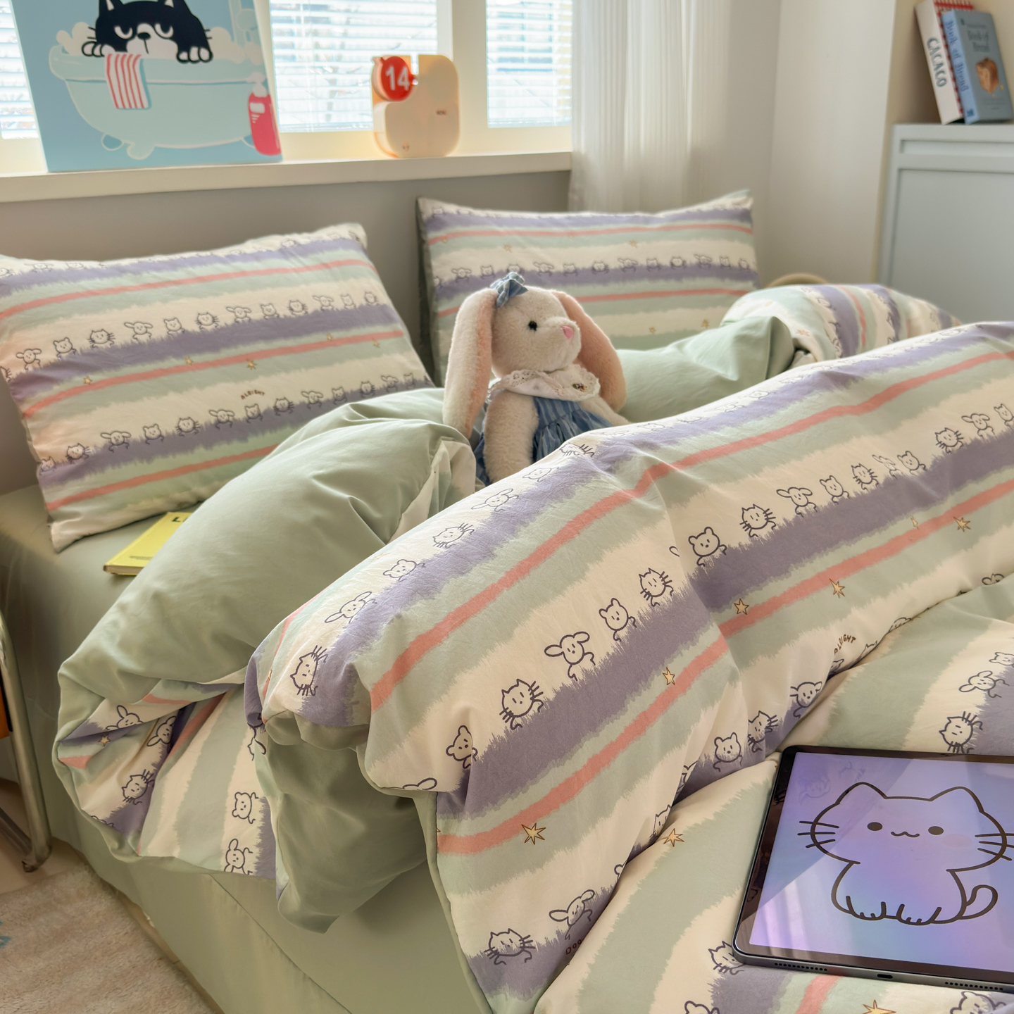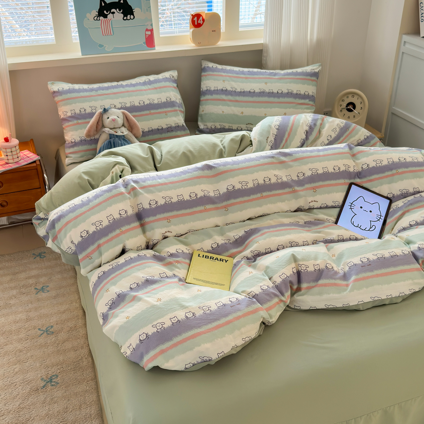 (总)德比尔斯 2026新款古法水洗仿棉云感棉小布袋四件套,波点气球,彩色心动,初见芭蕾,初夏,春日初恋,蝶舞飞,粉格KT猫,海边童话,蝴蝶结粉,灰条樱桃,蓝桉花,蜜恋樱桃,木马乐园,奶酪星宝,葡萄,七彩兔,童趣,兔小姐,小伙伴,阳光花园,樱川桃井,郁金花海,云瑶-紫,知秋