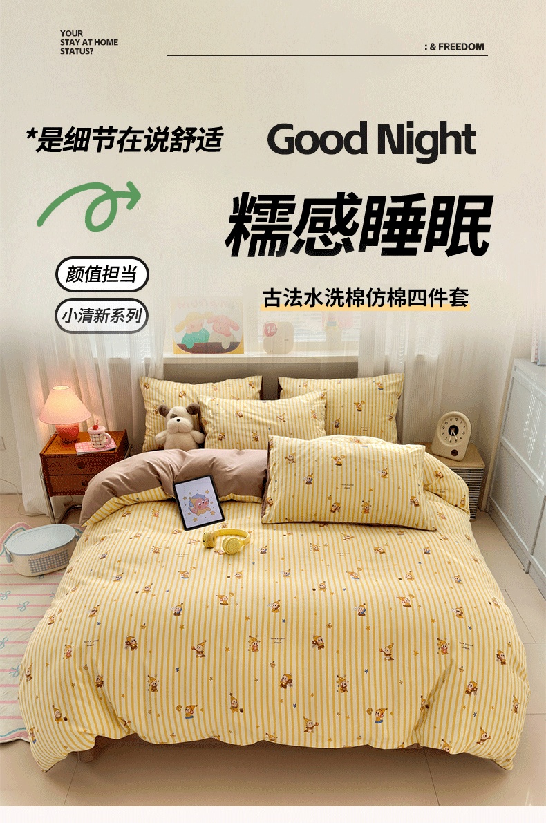 (总)德比尔斯 2026新款古法水洗仿棉云感棉小布袋四件套,波点气球,蝶舞飞,阳光花园,小伙伴,兔小姐,童趣,七彩兔,葡萄,奶酪星宝,蜜恋樱桃,蓝桉花,灰条樱桃,蝴蝶结粉,海边童话,粉格KT猫,木马乐园,春日初恋,彩色心动,初见芭蕾,初夏,樱川桃井,郁金花海,云瑶-紫,知秋