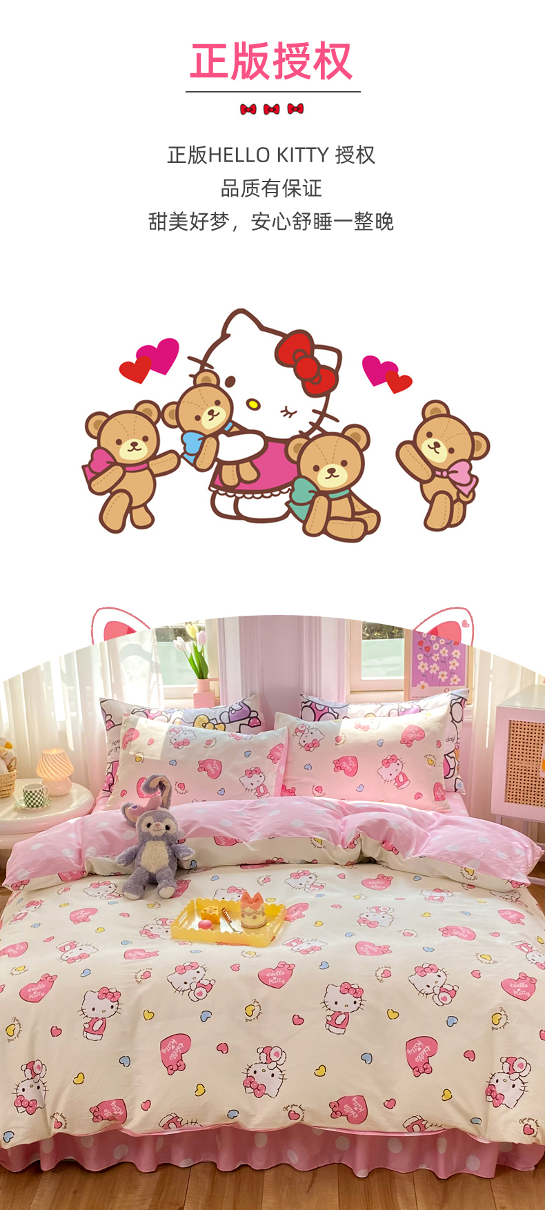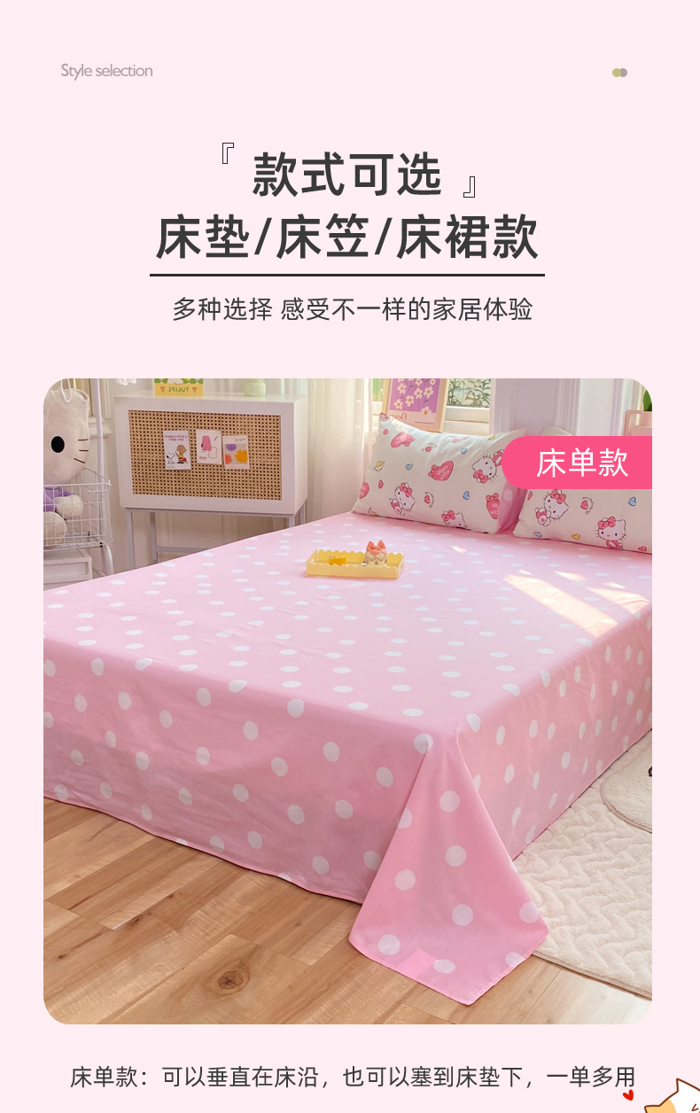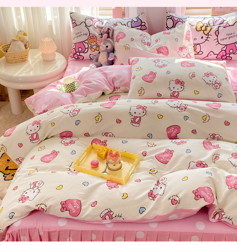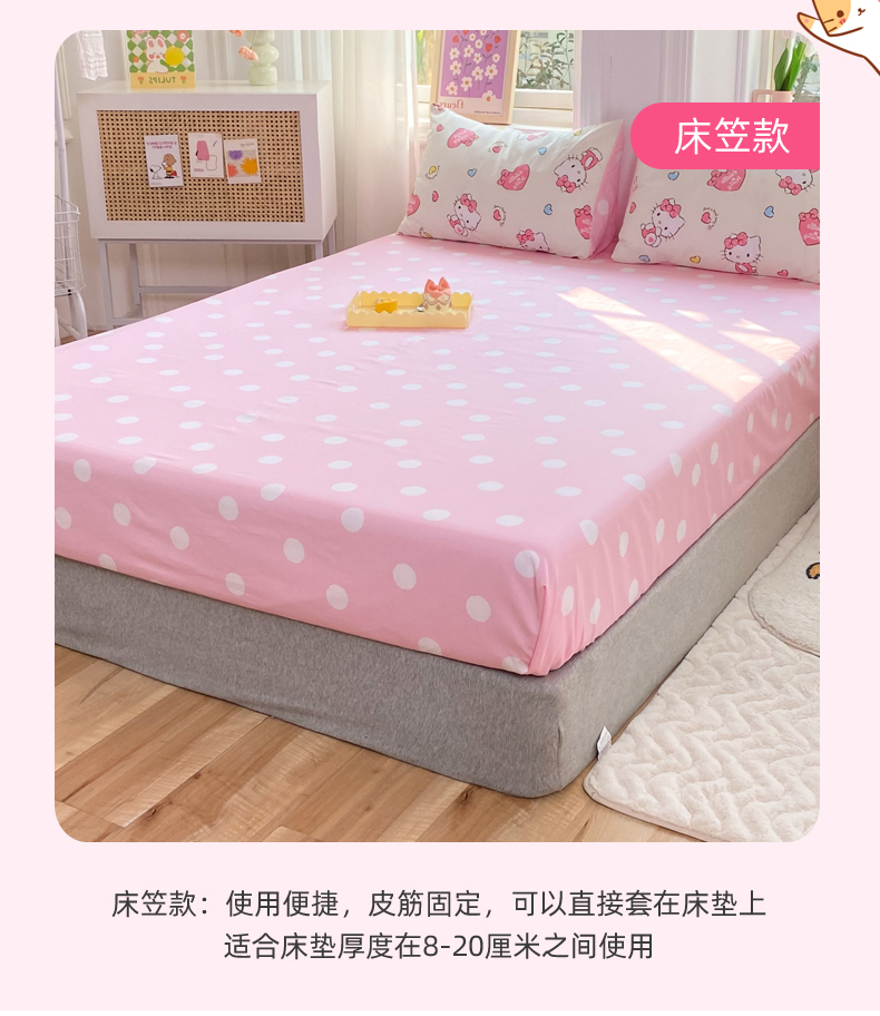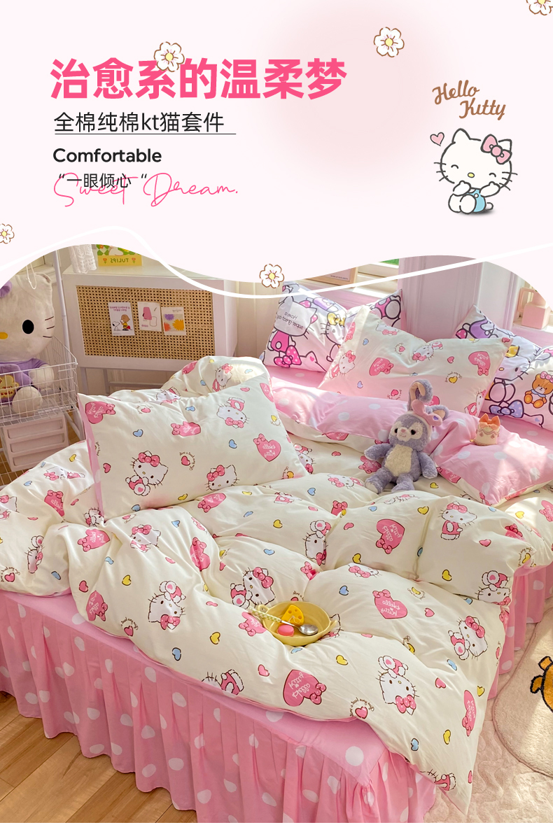 当前位置: 91家纺网 > 商品网购 > 床品套件 > 四件套 > 全棉普通四件套 > 玉元坊 2026新款正版授权三丽鸥系列全棉纯棉床单四件套学生三件套-凯蒂猫系列 公主kt【简约款】