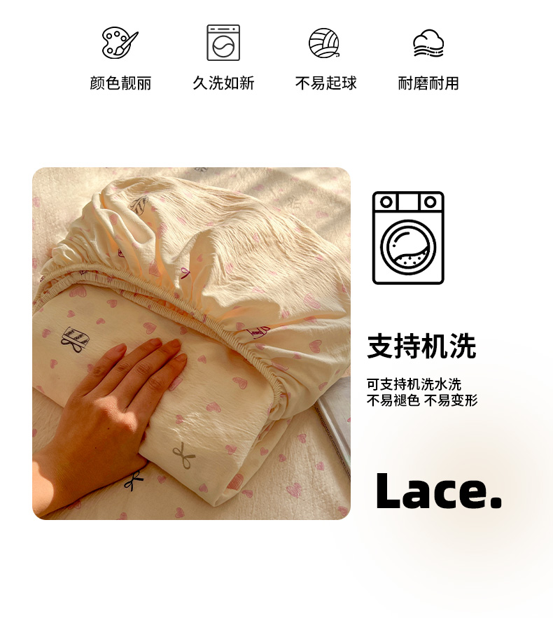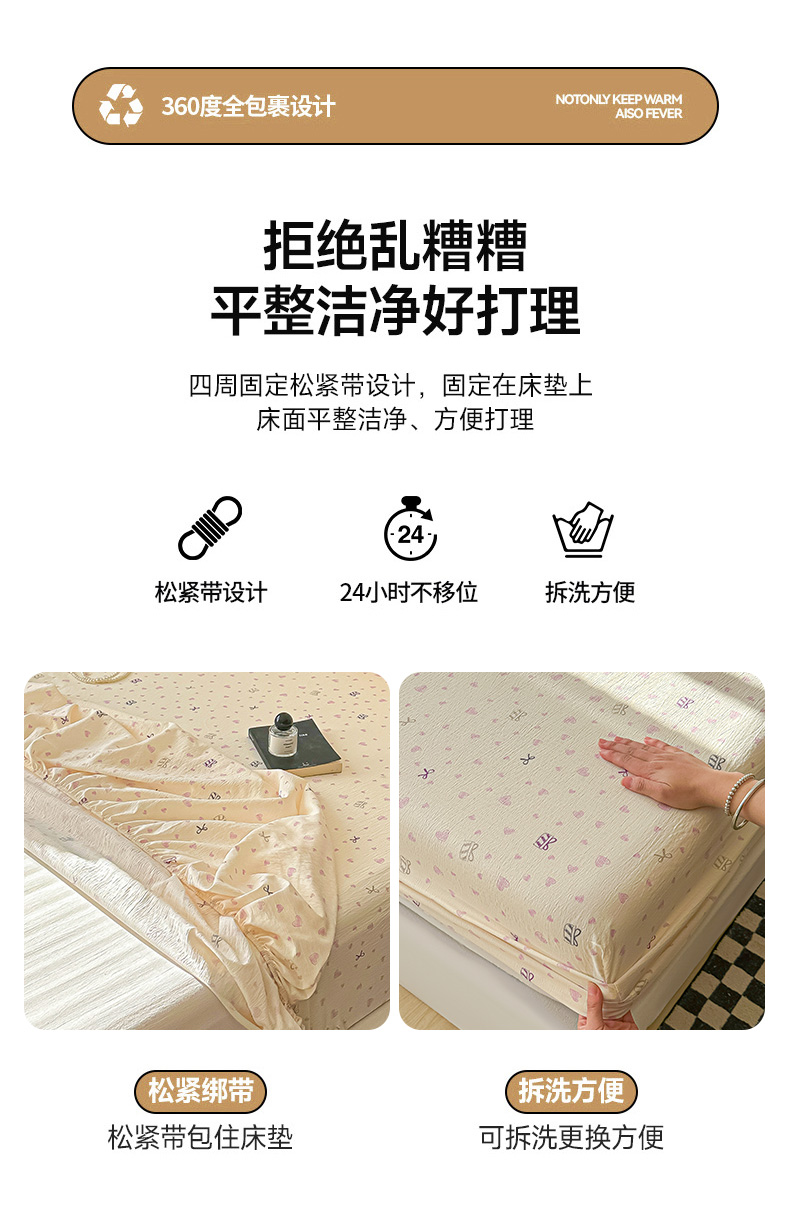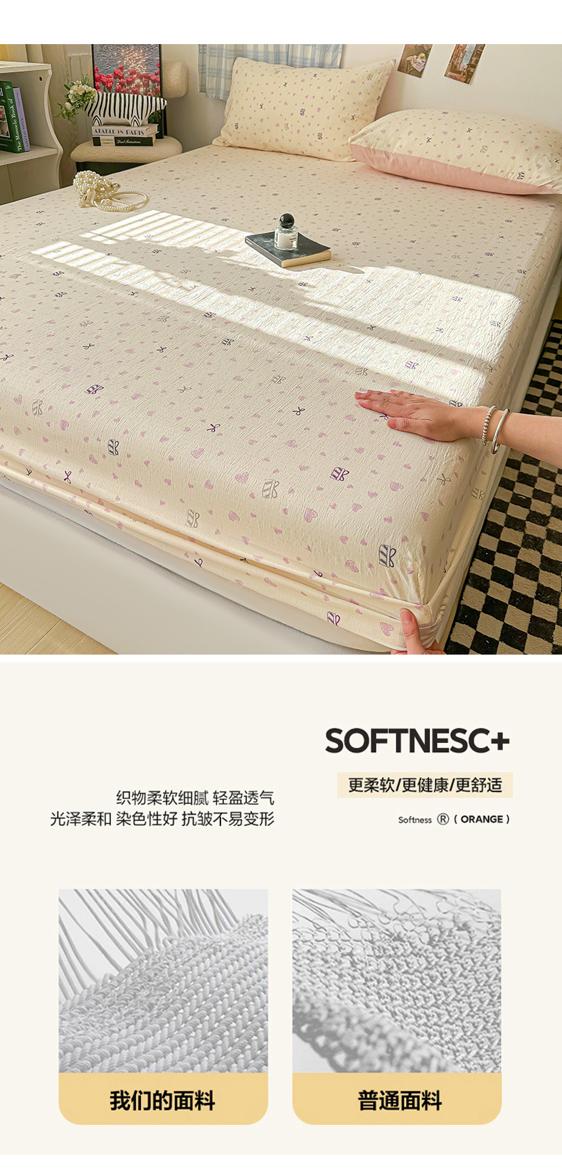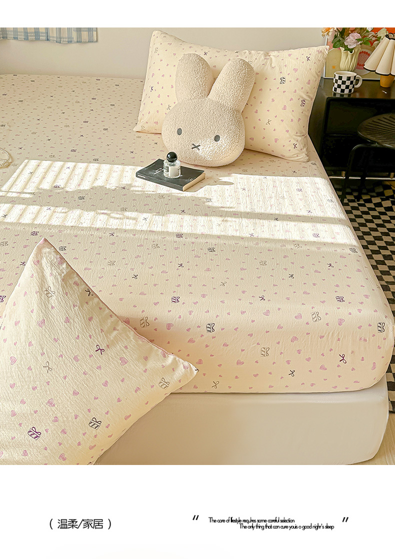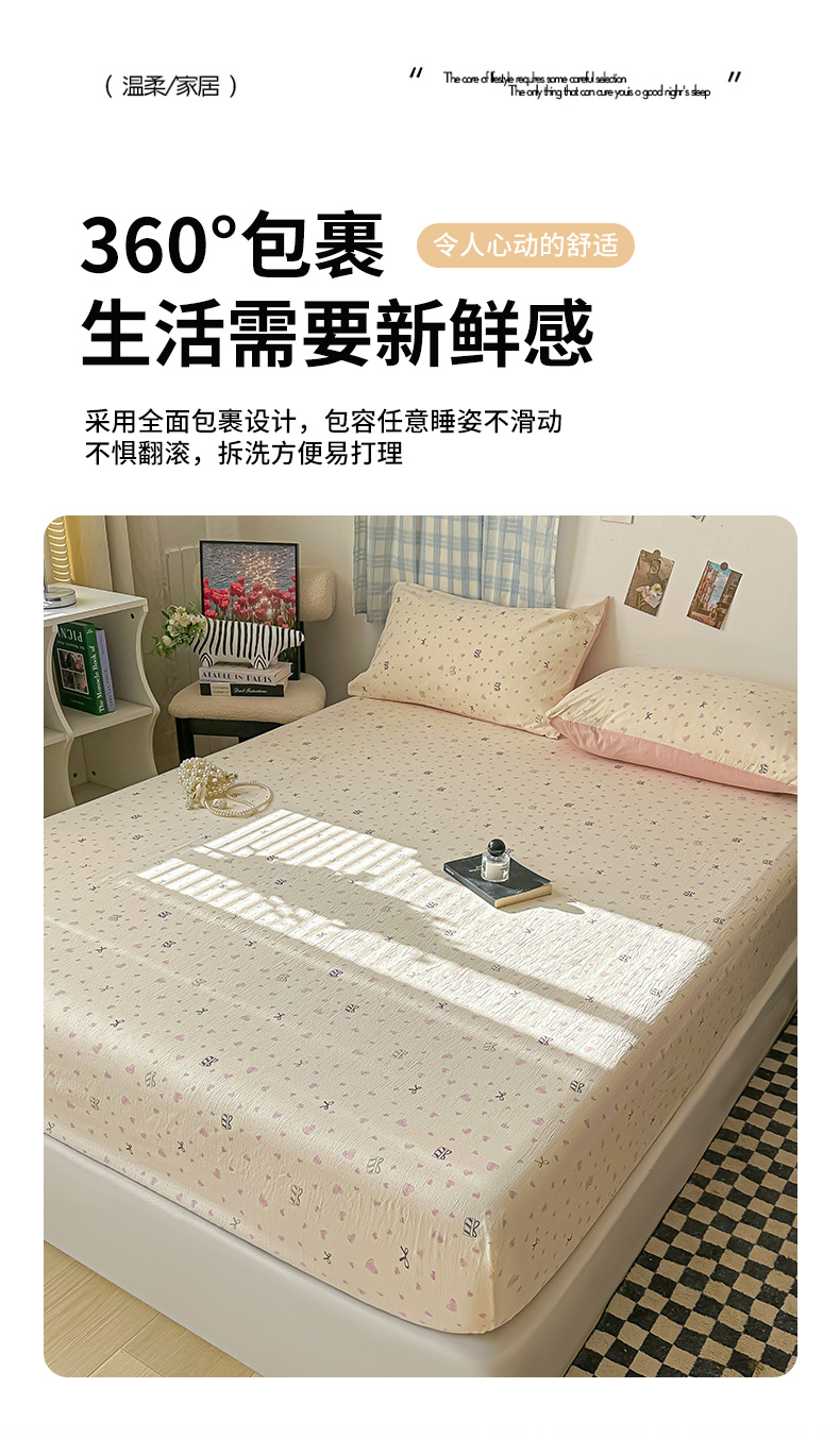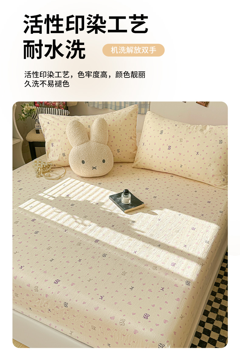 • 91家纺网 家纺一手货源 找家纺 繁花家居 2026新款泡芙棉云感木棉邹邹纱单床笠床单单件学生床 珠光爱心