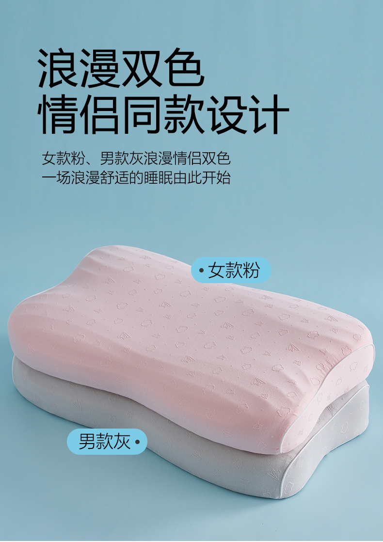 (总)鼎盛乳胶 2026新款零压记忆棉枕叠云双层枕枕头枕芯,组合图,男款灰,女款粉