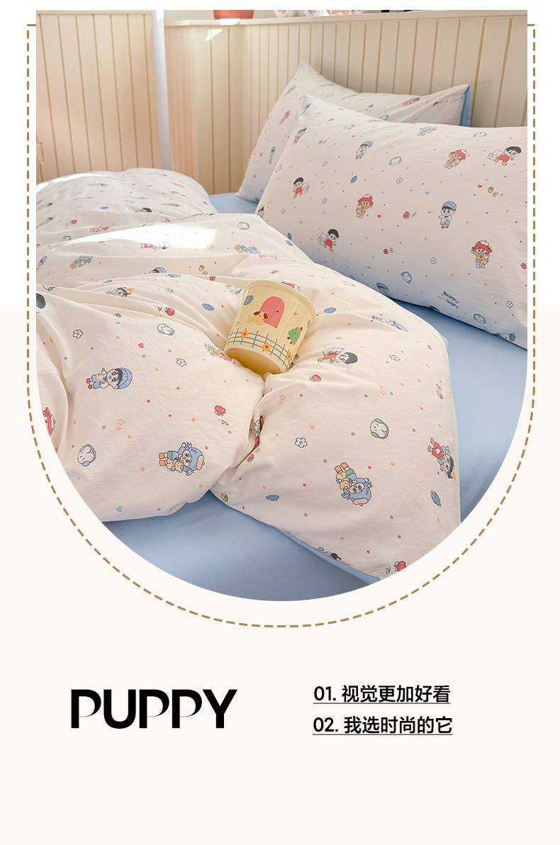 当前位置: 91家纺网 > 商品网购 > 床品套件 > 四件套 > 其它四件套 > 夜笙家纺 2026新款古法水洗仿棉云感四件套 童趣甜日
