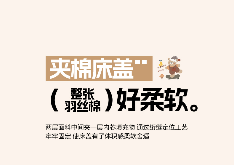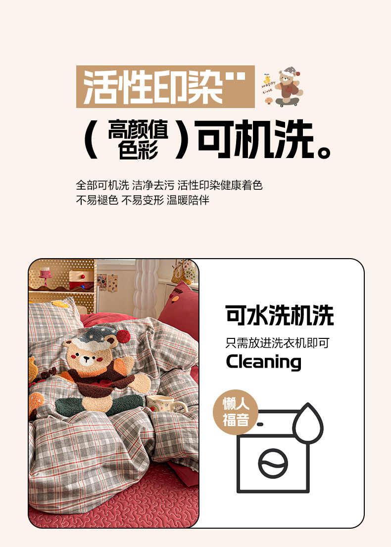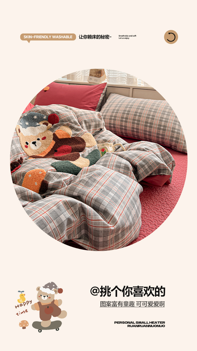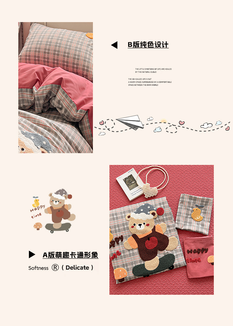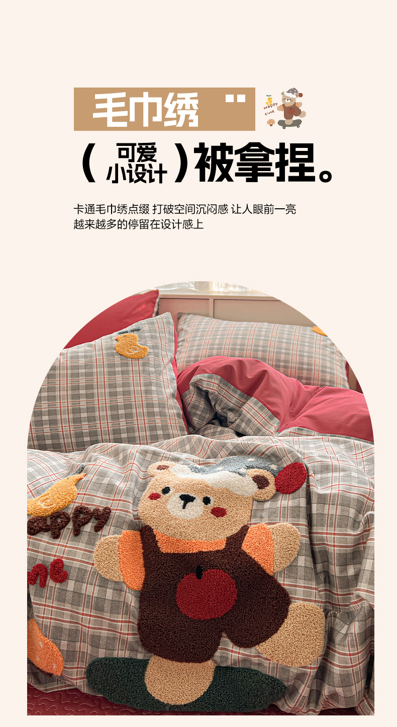 商品名称:鑫喜莱家纺 2026新款全棉纯棉13372床盖款原创毛巾绣四件套 滑板小熊仔