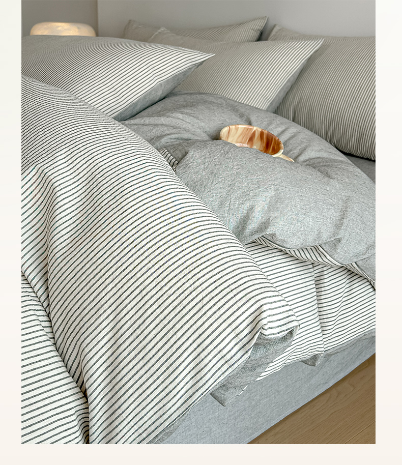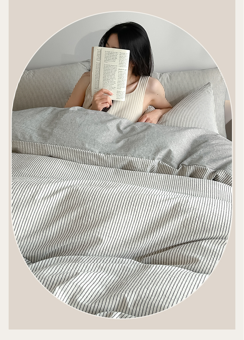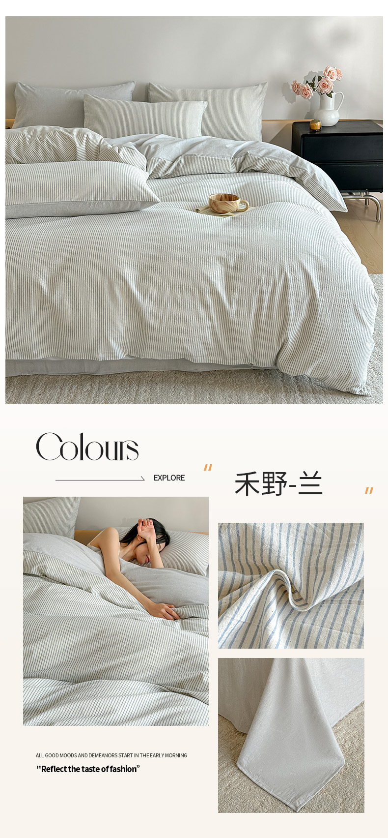 当前位置: 91家纺网 > 商品网购 > 床品套件 > 四件套 > 其它四件套 > ab家纺 2026新款条纹色织棉麻四件套 禾野-黑