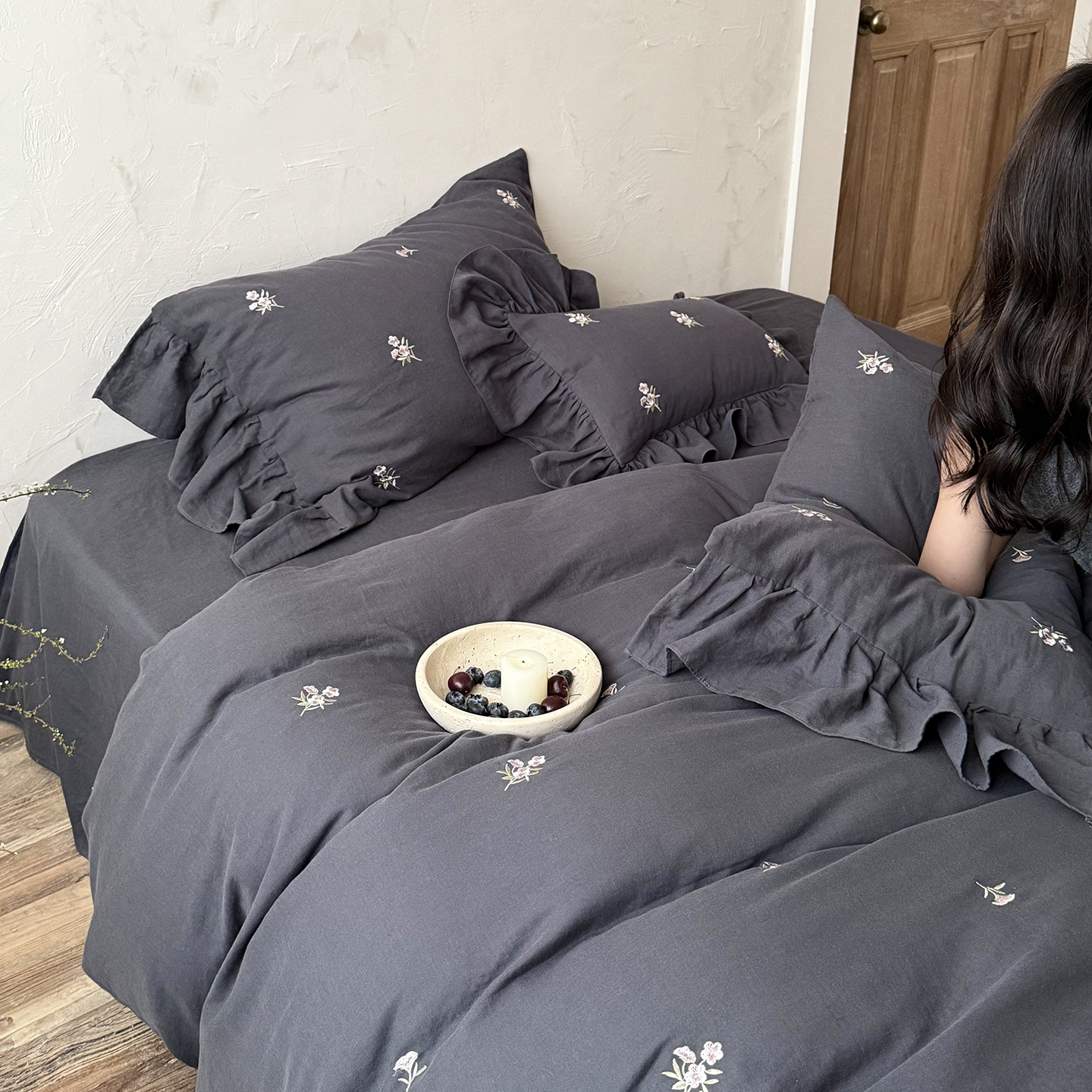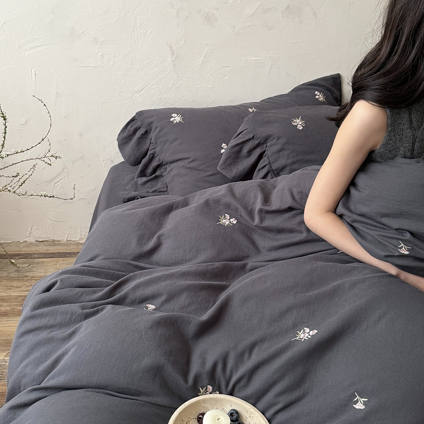 当前位置: 91家纺网 > 商品网购 > 床品套件 > 四件套 > 全棉普通四件套 > (总)鹿班家居 2026春季新品全棉皱皱纱精密刺绣系列四件套-花枝瑾(标准会员-20元)