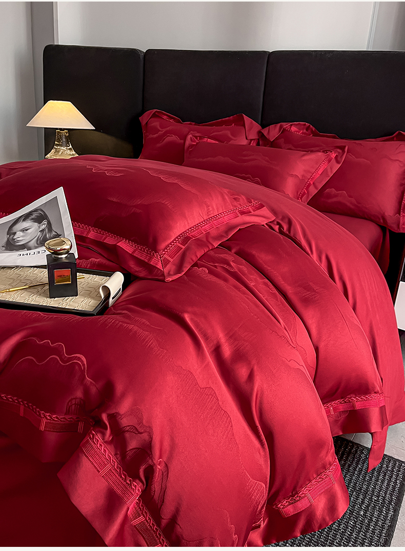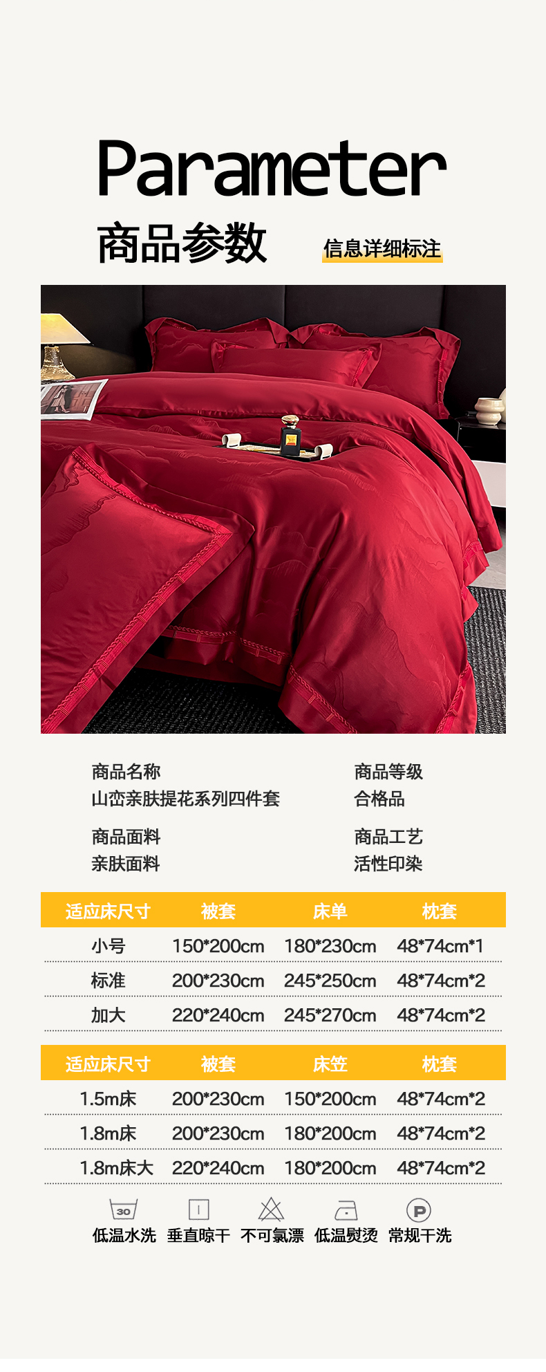 当前位置: 91家纺网 > 商品网购 > 床品套件 > 四件套 > 其它四件套 > 置顶家纺 2026春夏新款亲肤提花四件套-山峦 山峦-大红