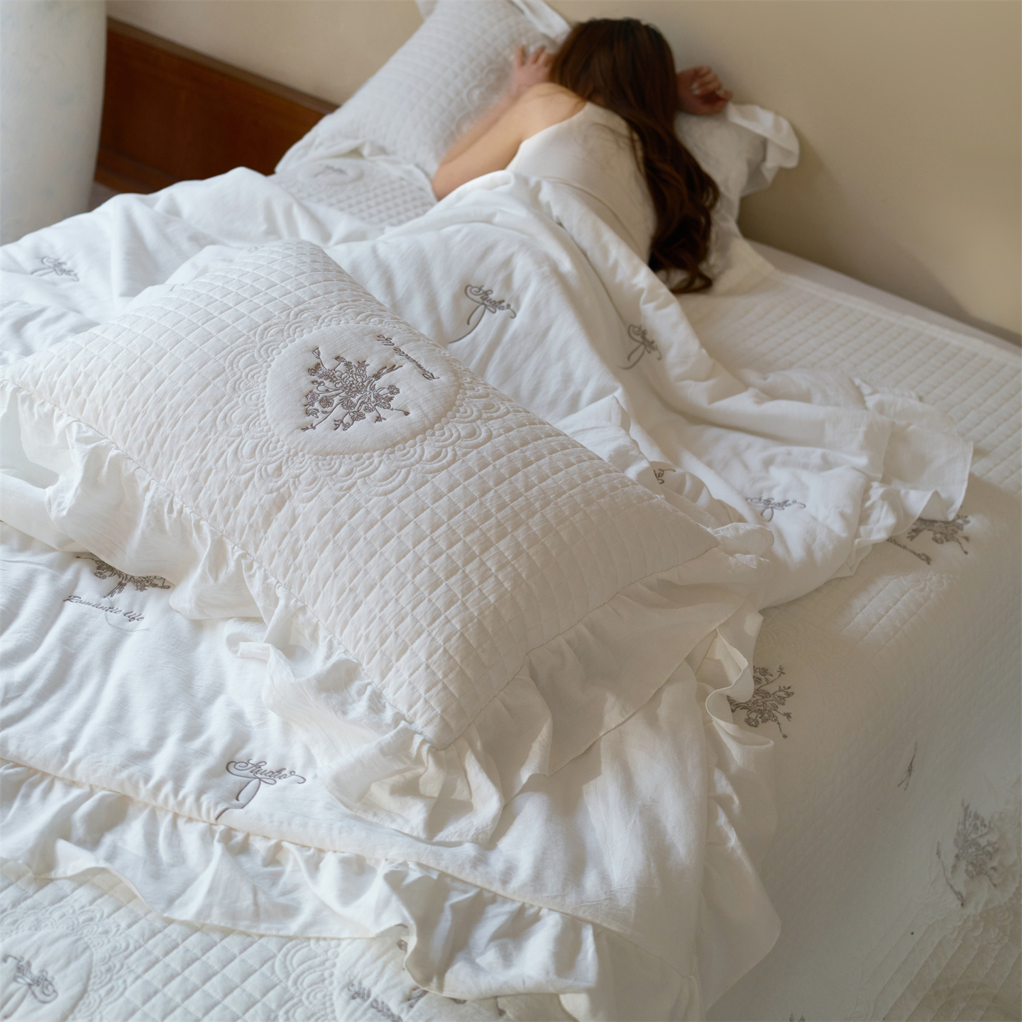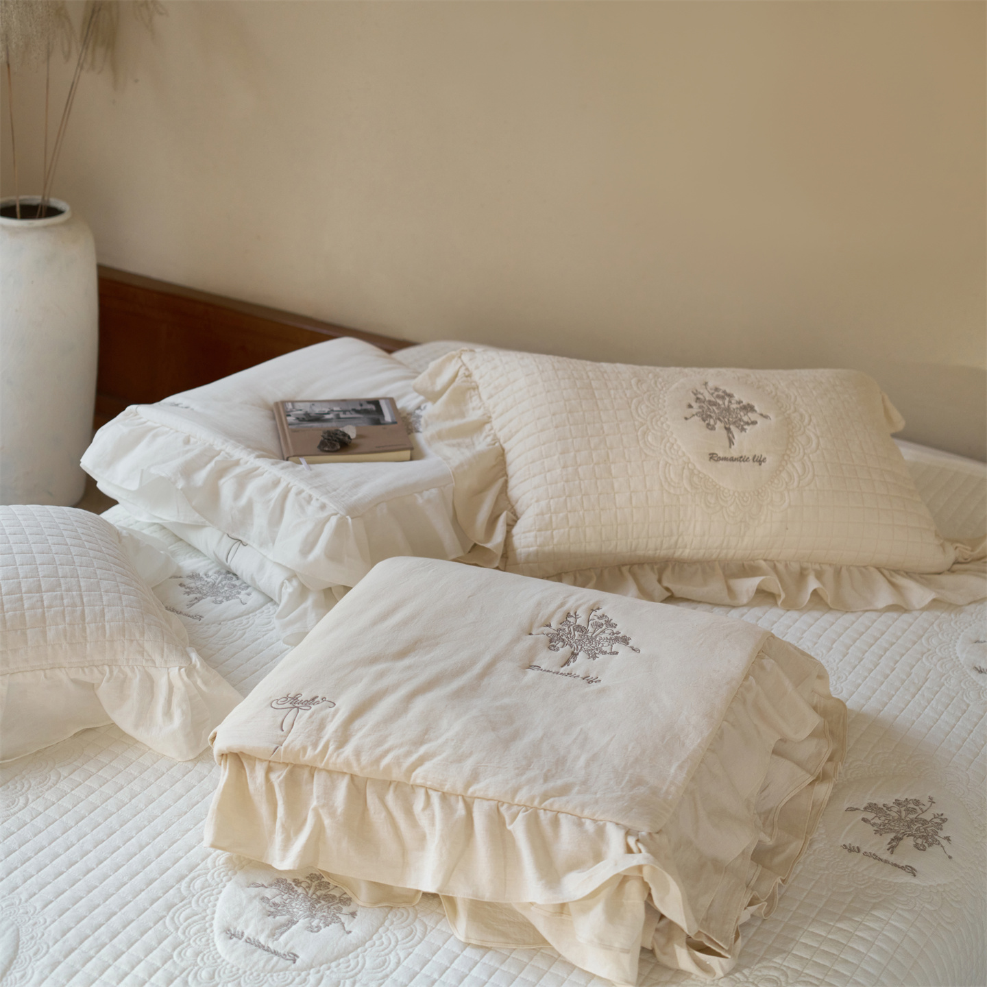 商品名称:上喜 2026新款多功能夏被床盖四件套浪漫生活 浪漫生活-米色