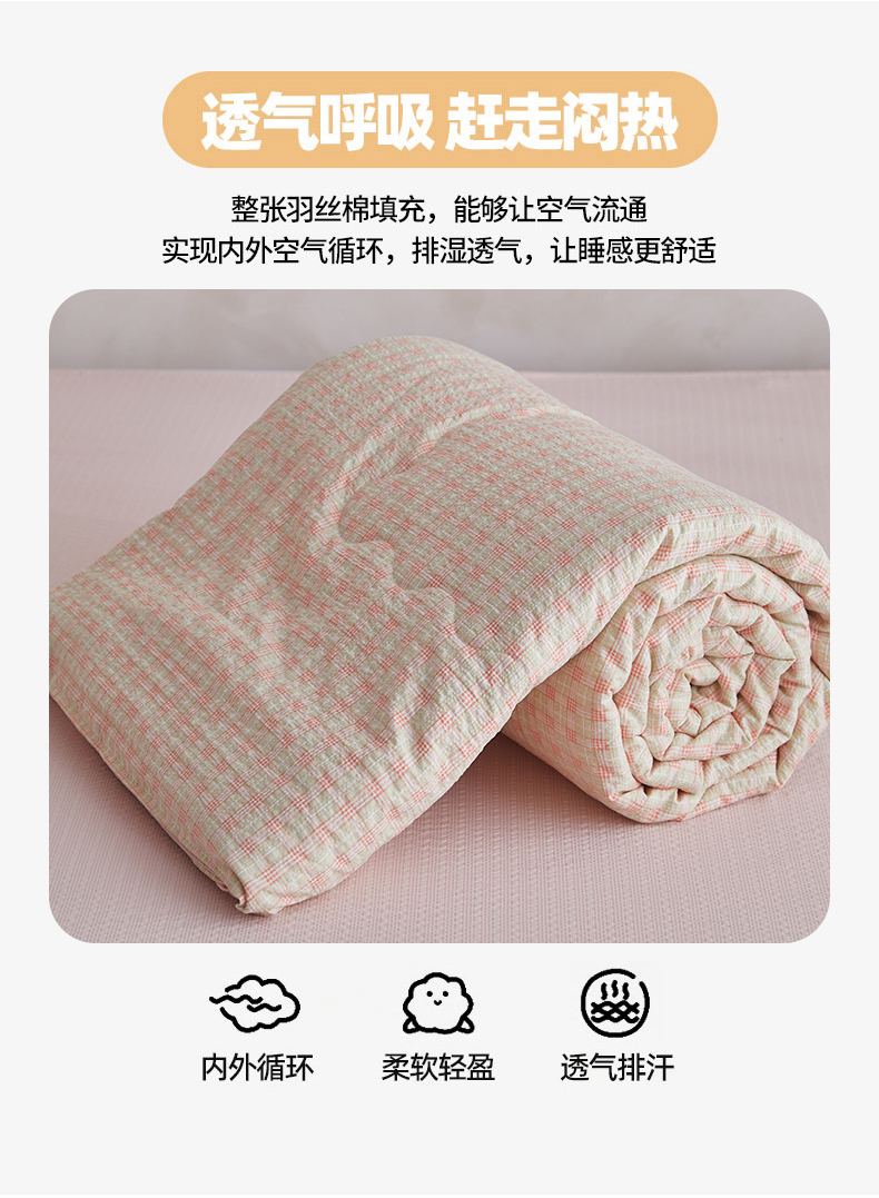 艺菲阁家纺 2026新款泡芙棉夏被夏凉被空调被 青橘格