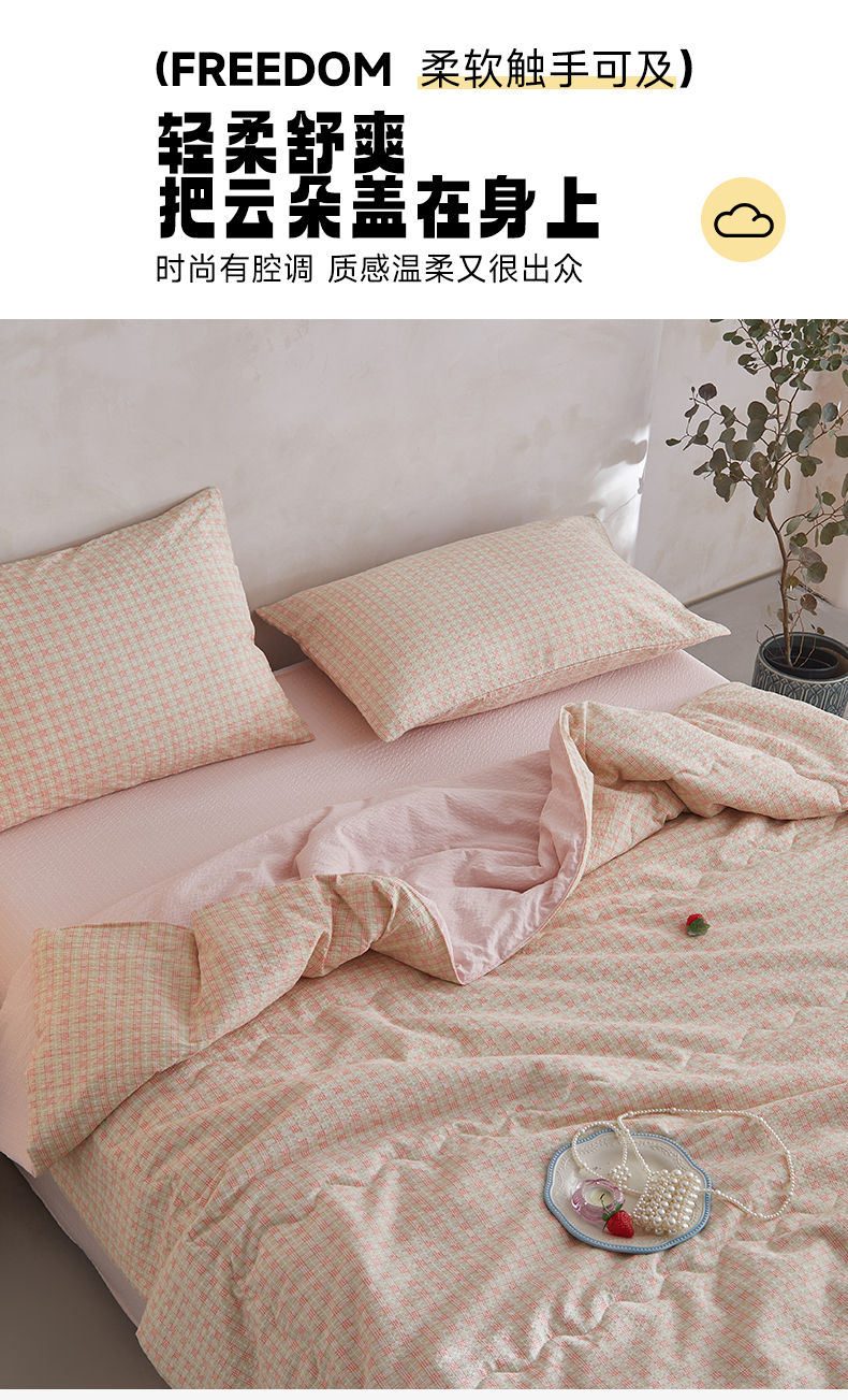 (总)艺菲阁家纺 2026新款泡芙棉夏被夏凉被空调被,春日马卡龙,粉雾星点,古典格,可可粉格,可可蓝格,可可绿格,蓝雾星点,青橘格,组合图仅供展示不可下单