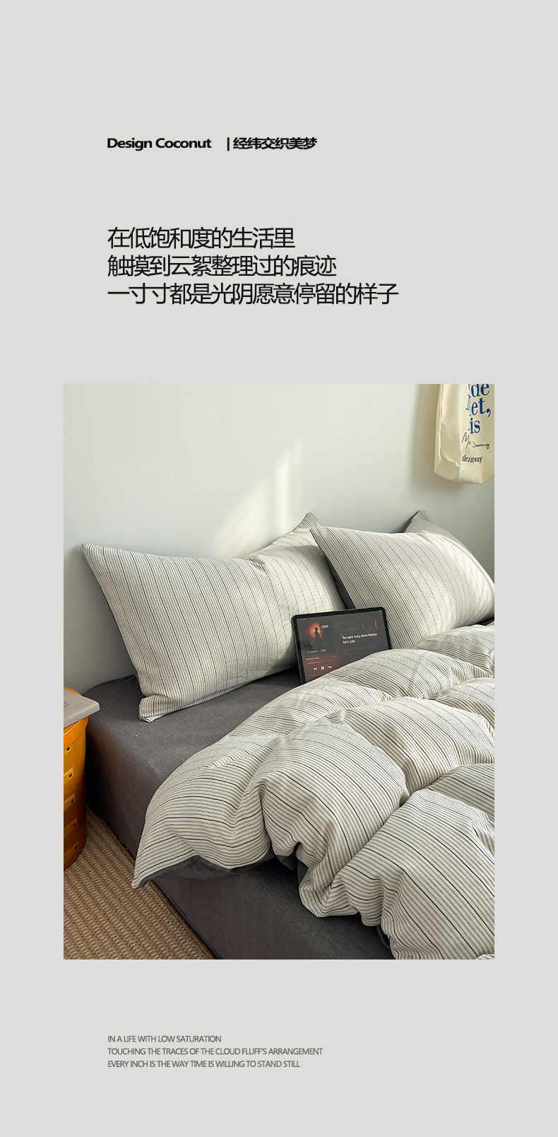 商品名称:莱茵家居 2026新款A类全棉色织日系芝麻锻纹套件-暮云系列 暮云-白灰