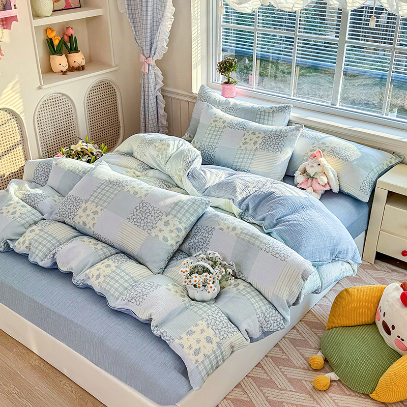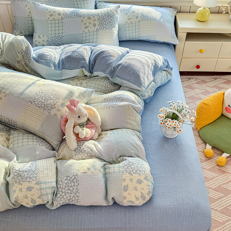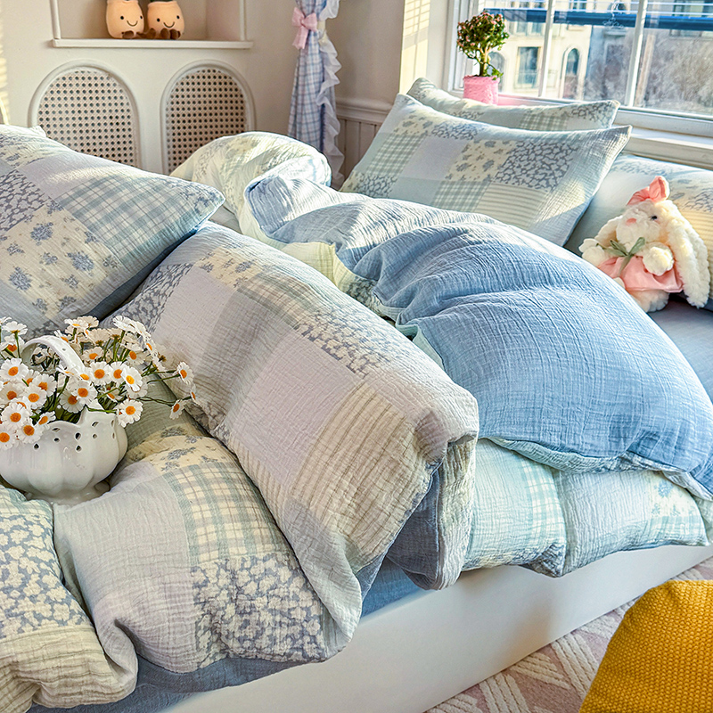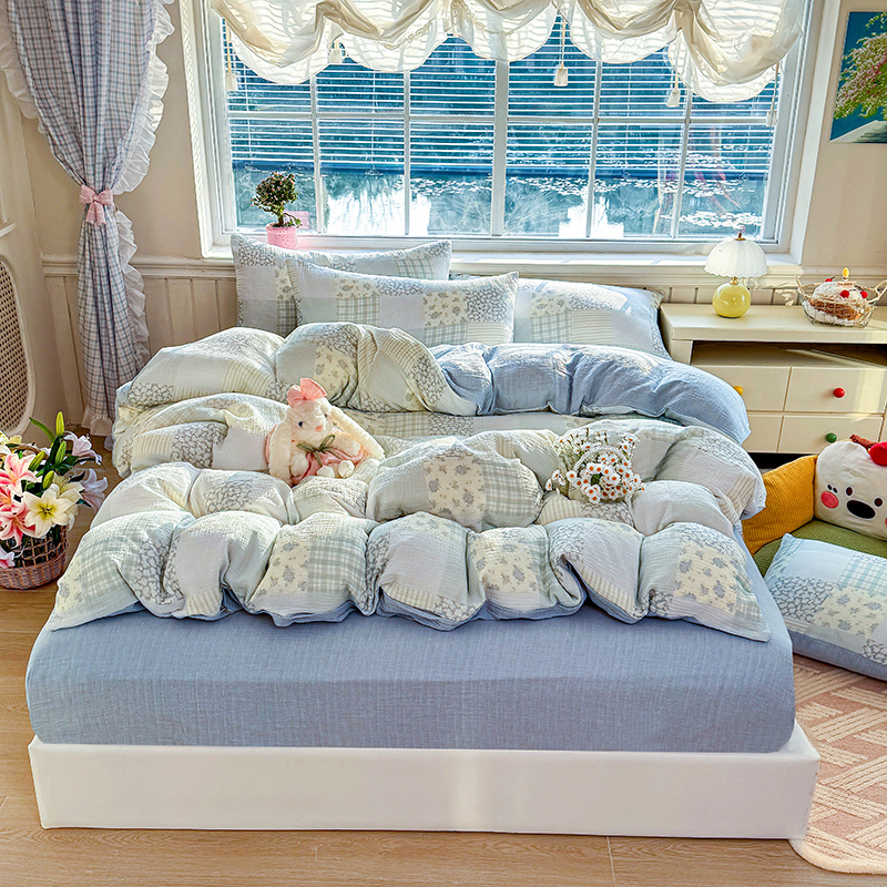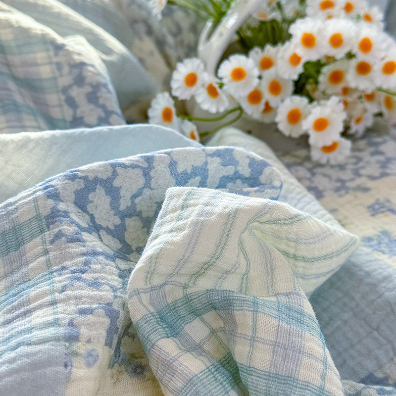 木楌家居 2026新款A类全棉皱皱纱印花四件套 浅夏 兰