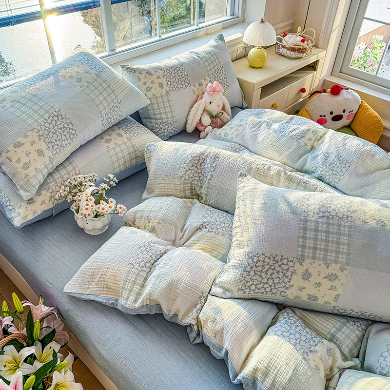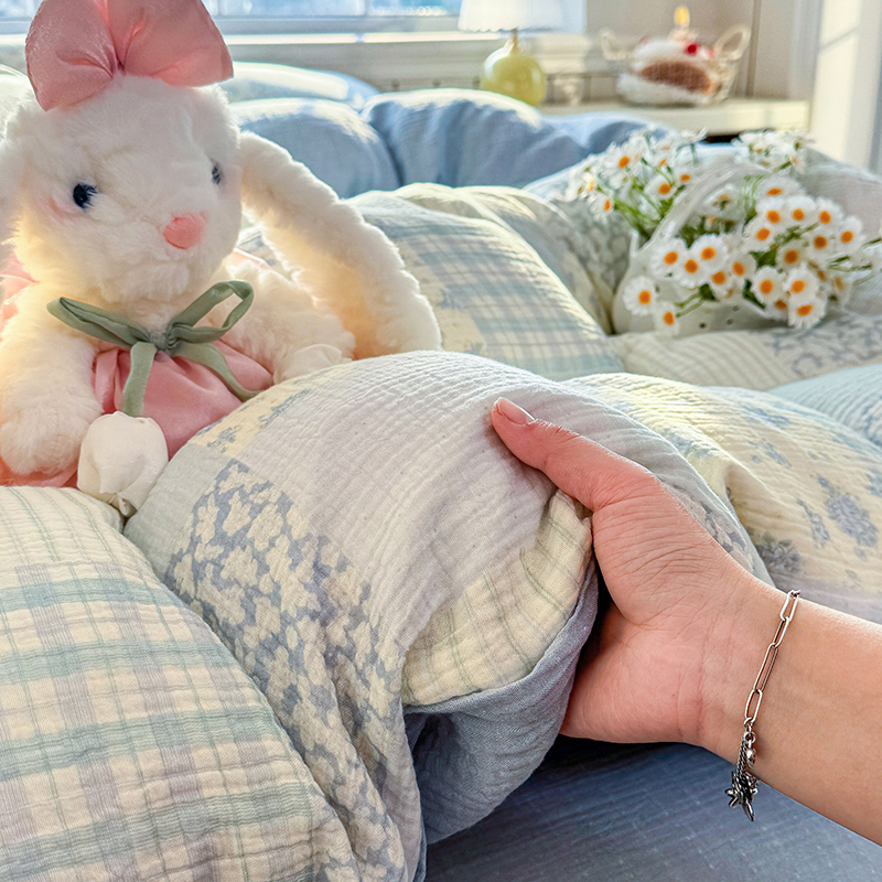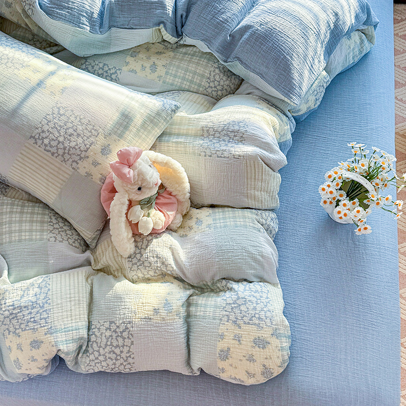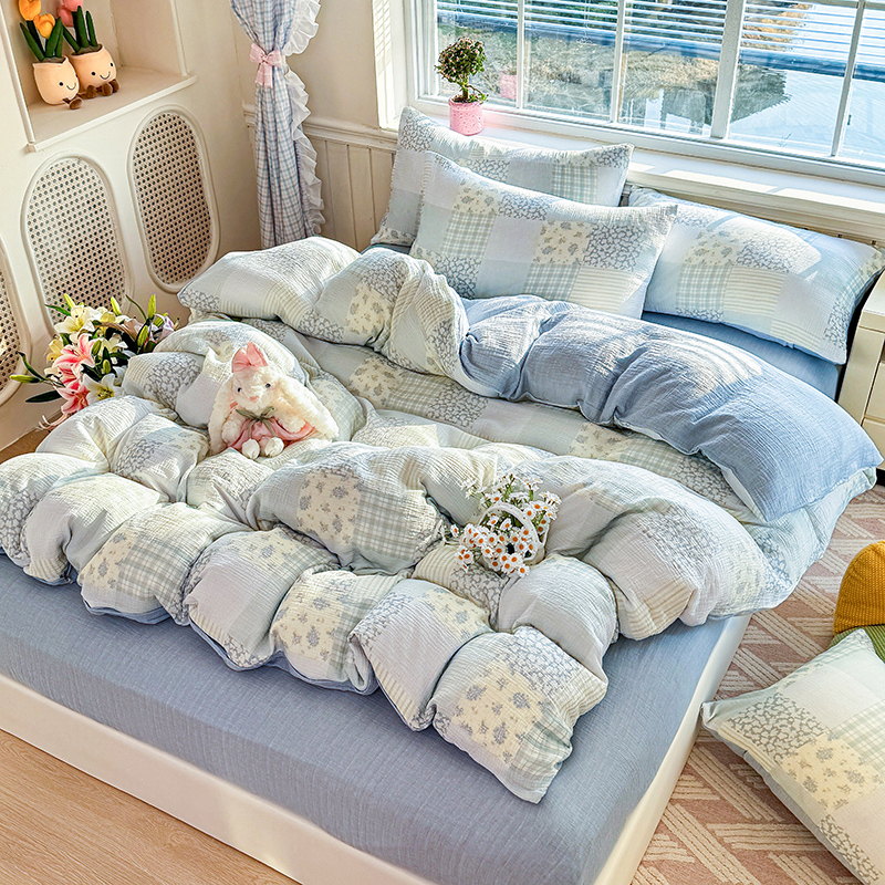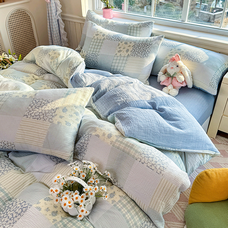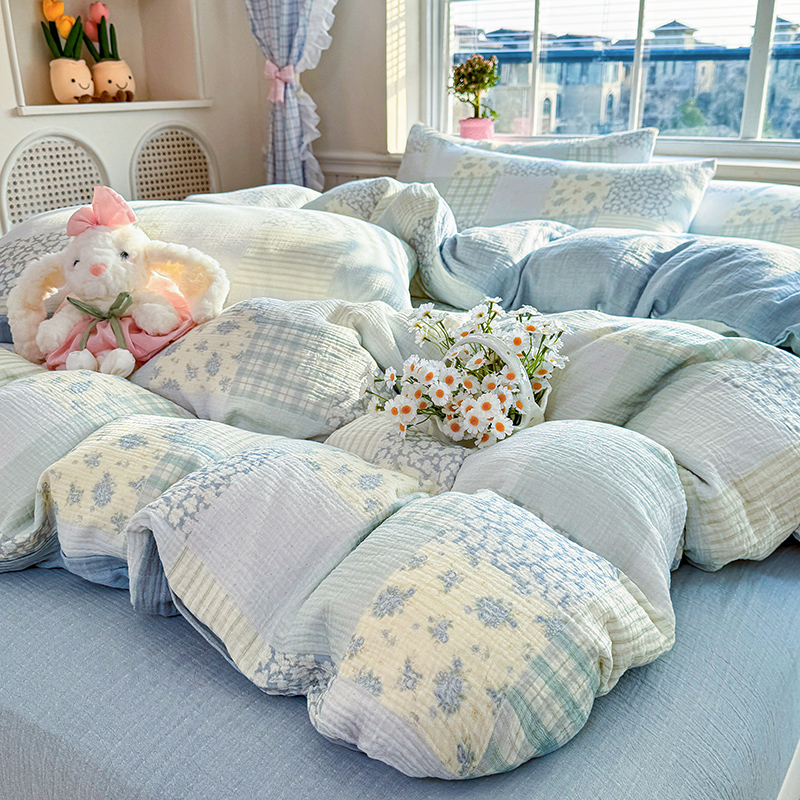 木楌家居 2026新款A类全棉皱皱纱印花四件套 浅夏 兰
