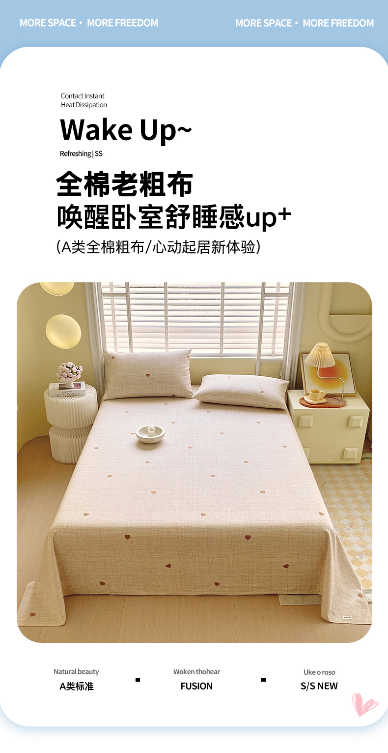金鑫汇家纺 2026新款全棉老粗布单品床单系列 心之恋