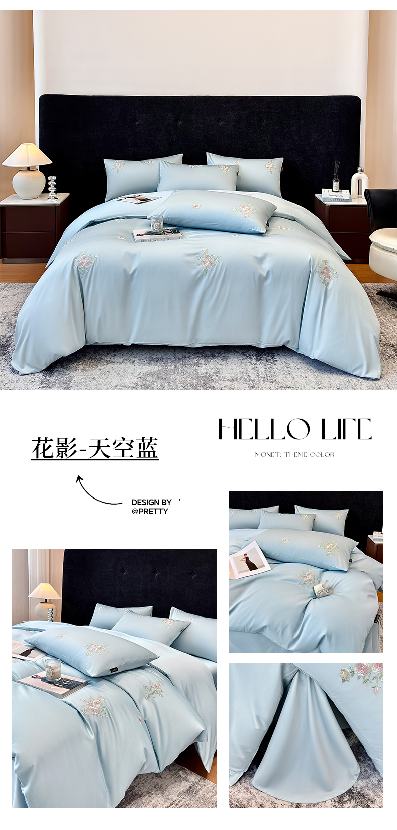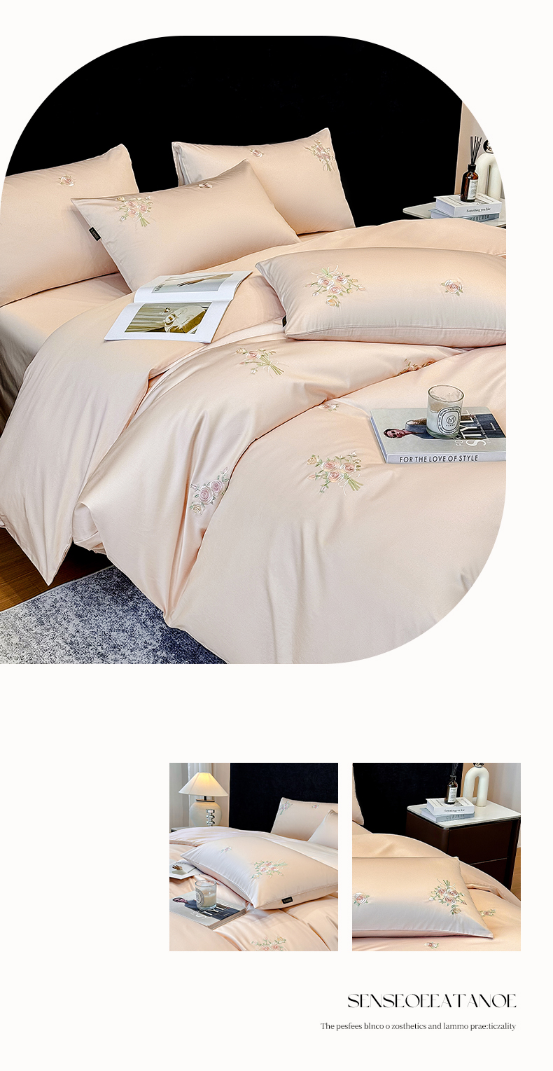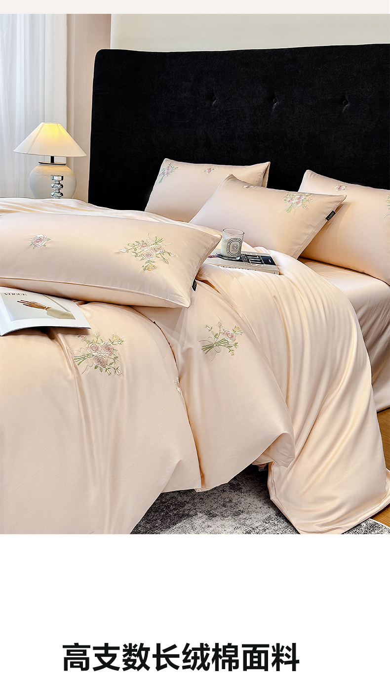 (总)欣宜家纺 2026新款50s纯棉全棉贡缎长绒棉刺绣绣花床上四件套【含高端礼盒】-花影系列,花影-轻奢粉,花影-天空蓝,花影-香芋紫