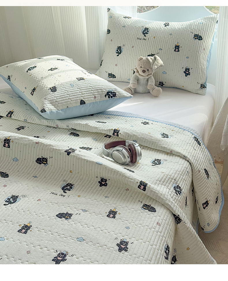 • 91家纺网 家纺一手货源 找家纺 (总)KA家纺 2026春夏新款全棉印花小清新床盖三件套 第二波,贪睡猫,彼得小兔,樱桃熊仔,心心狗,曲奇小狗,格子小狗