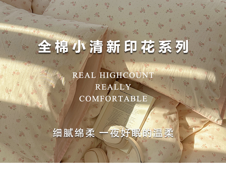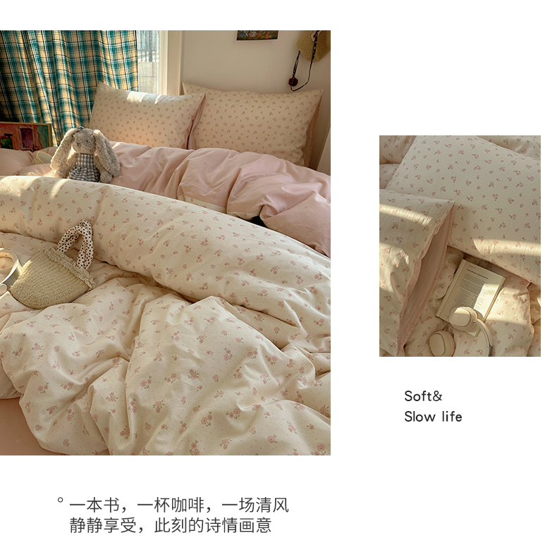 当前位置: 91家纺网 > 商品网购 > 床品套件 > 四件套 > 全棉普通四件套 > XIWEN-希文家纺 2026春夏新款40支全棉纯棉13372小清新印花四件套 春之约定