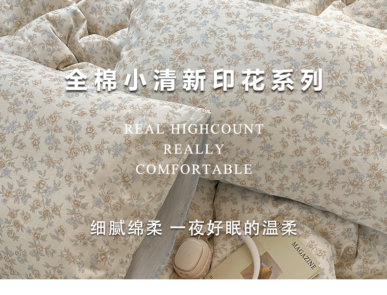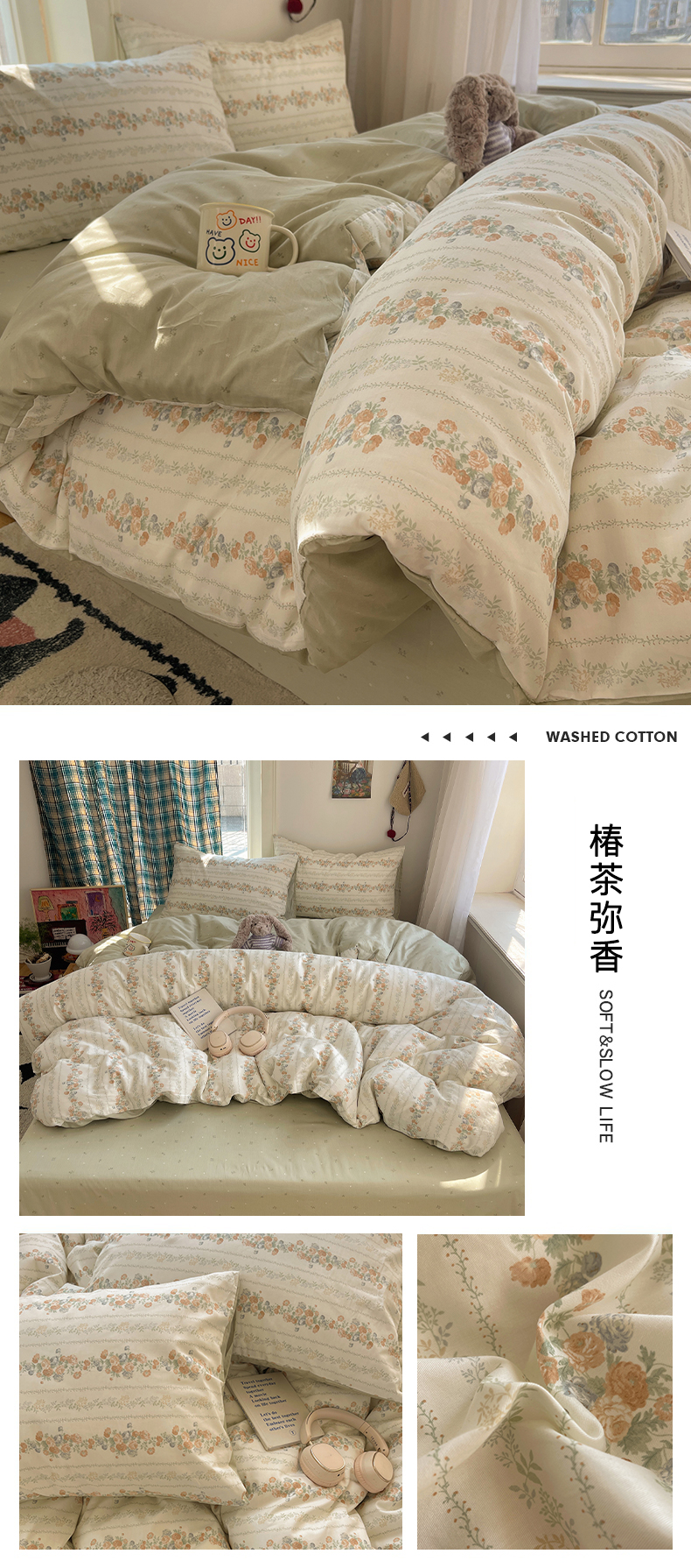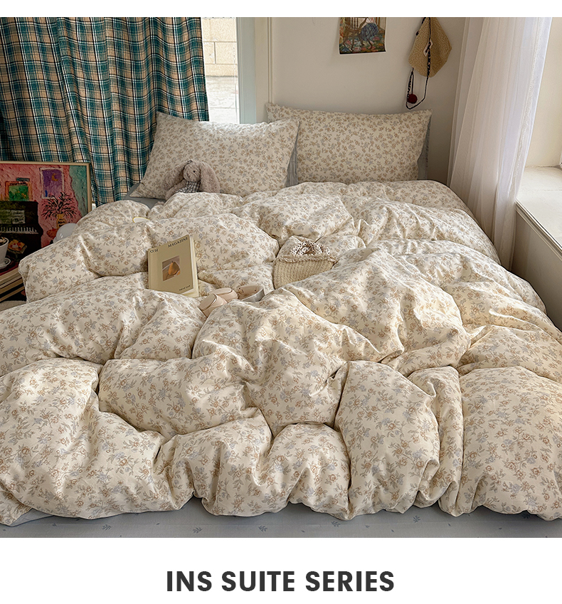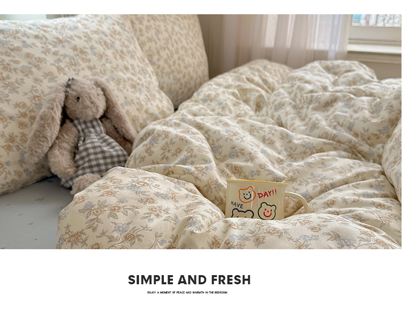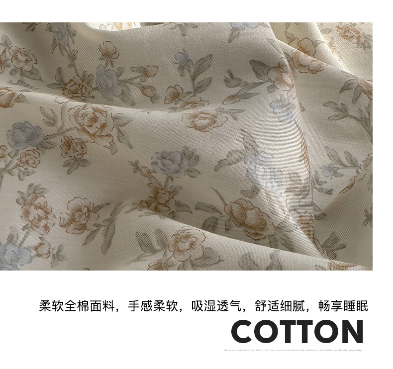 当前位置: 91家纺网 > 商品网购 > 床品套件 > 四件套 > 全棉普通四件套 > XIWEN-希文家纺 2026春夏新款40支全棉纯棉13372小清新印花四件套 山茶丝语