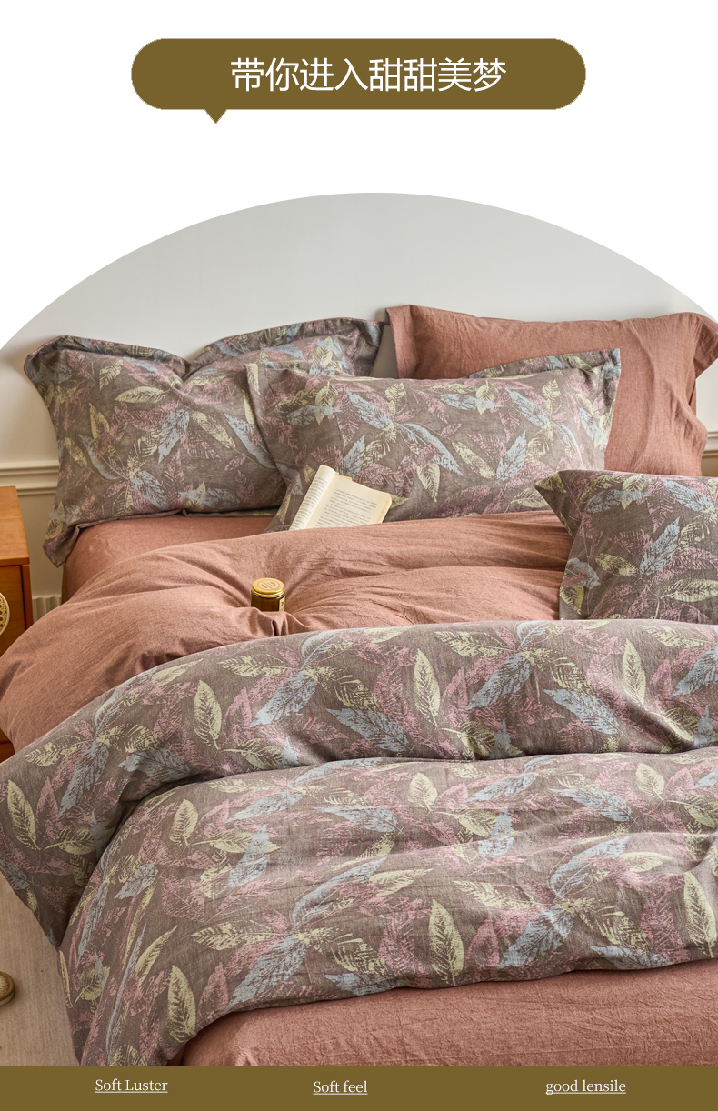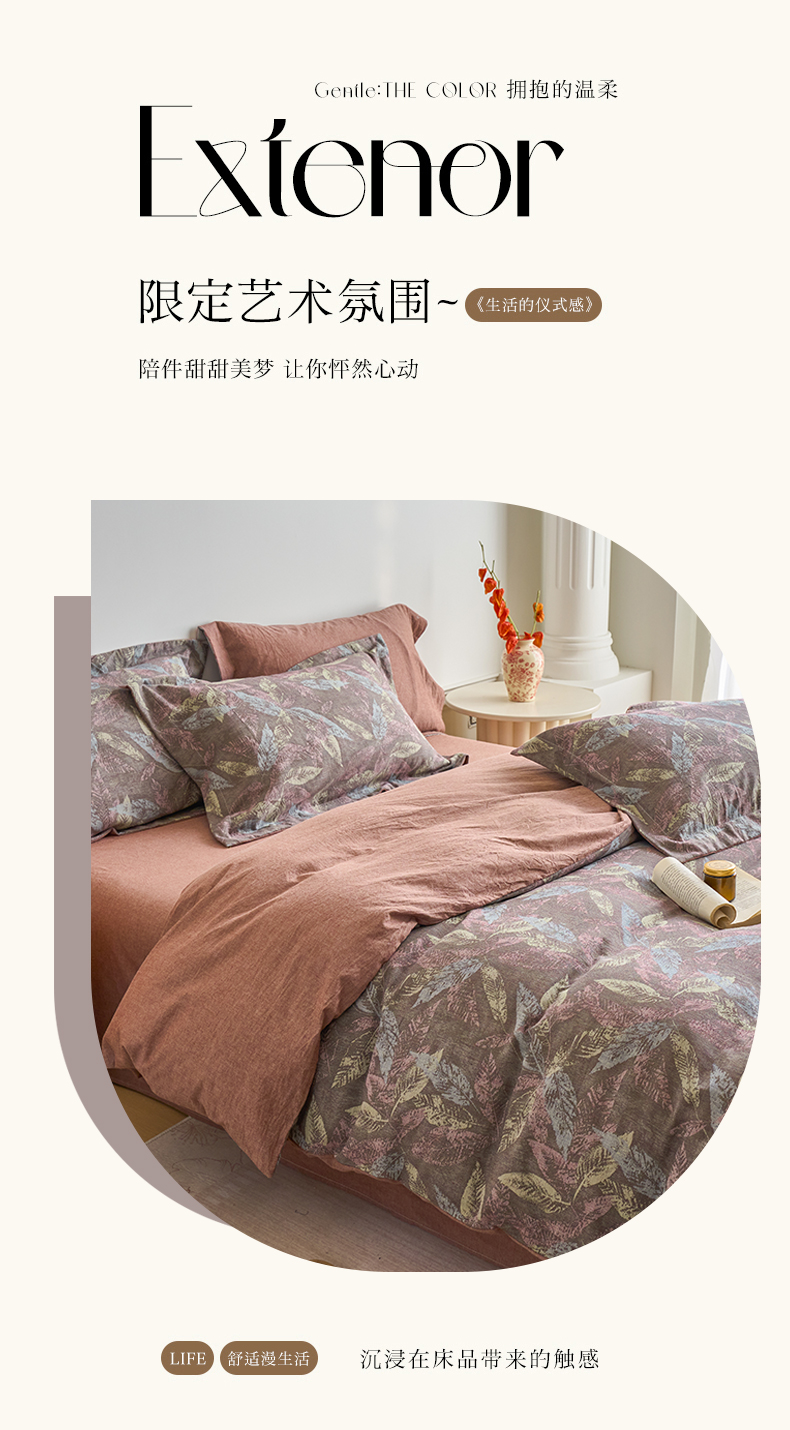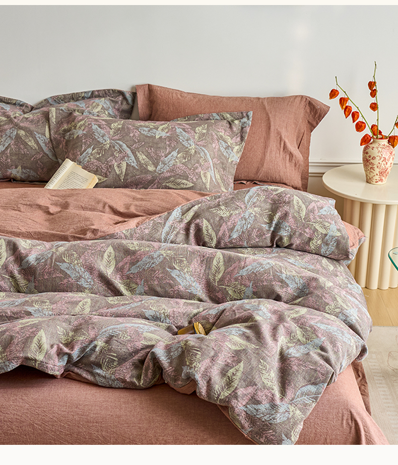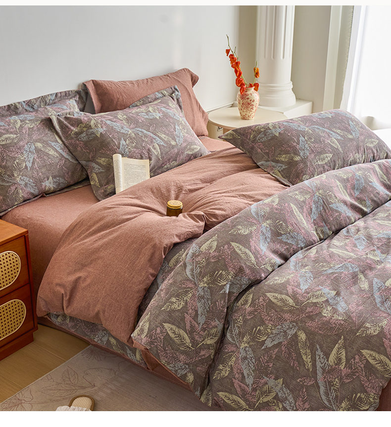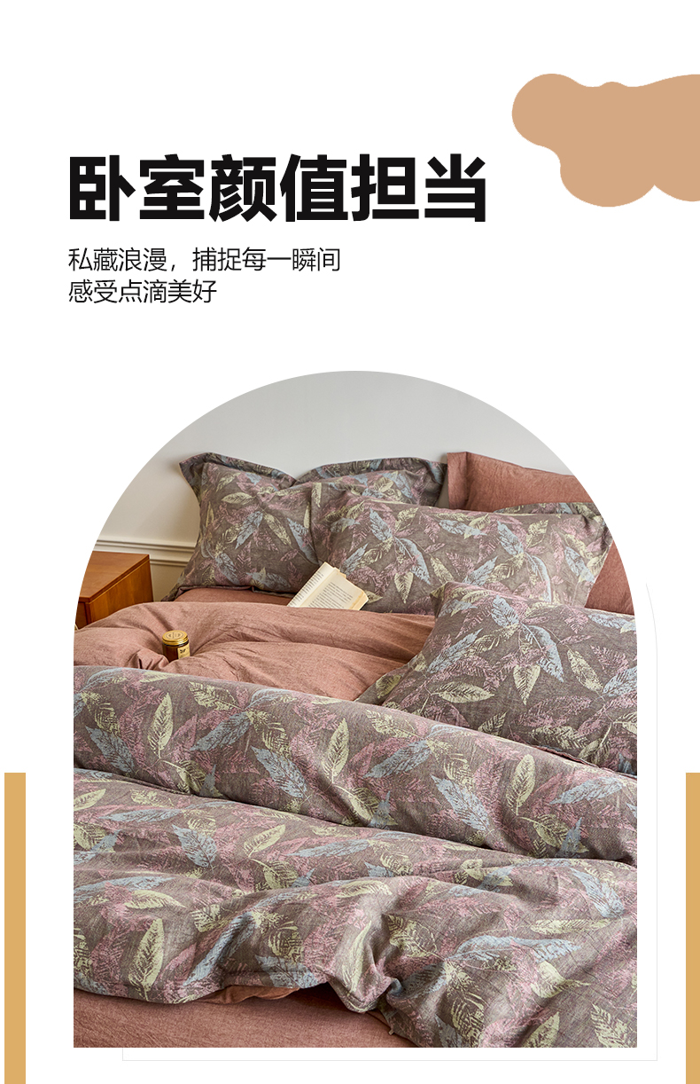 当前位置: 91家纺网 > 商品网购 > 床品套件 > 四件套 > 全棉普通四件套 > 兰紫橙家纺 2026春夏新款全棉纯棉色织提花四件套 叶之舞-暗红