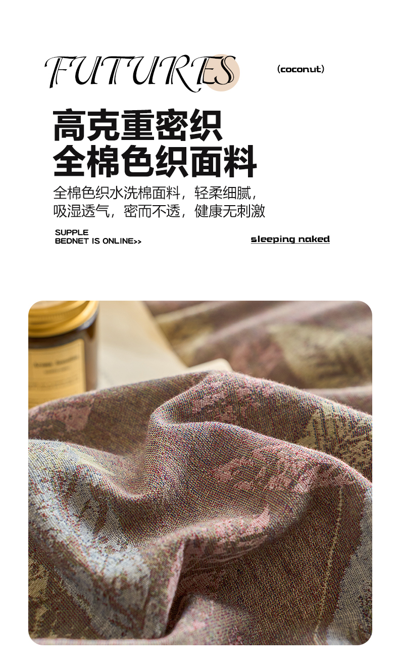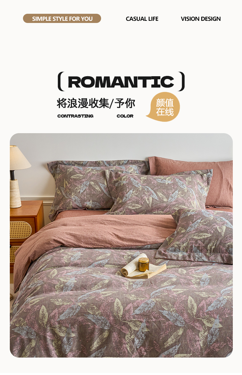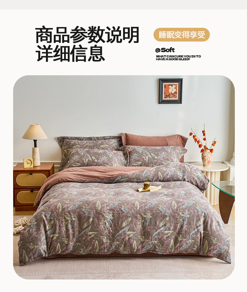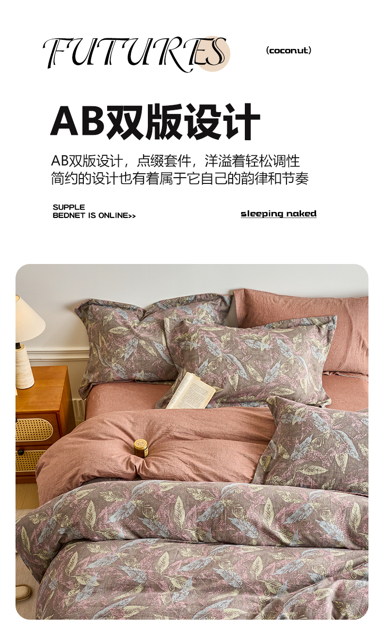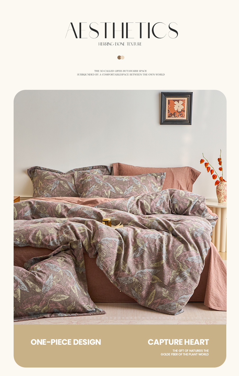 当前位置: 91家纺网 > 商品网购 > 床品套件 > 四件套 > 全棉普通四件套 > 兰紫橙家纺 2026春夏新款全棉纯棉色织提花四件套 叶之舞-暗红