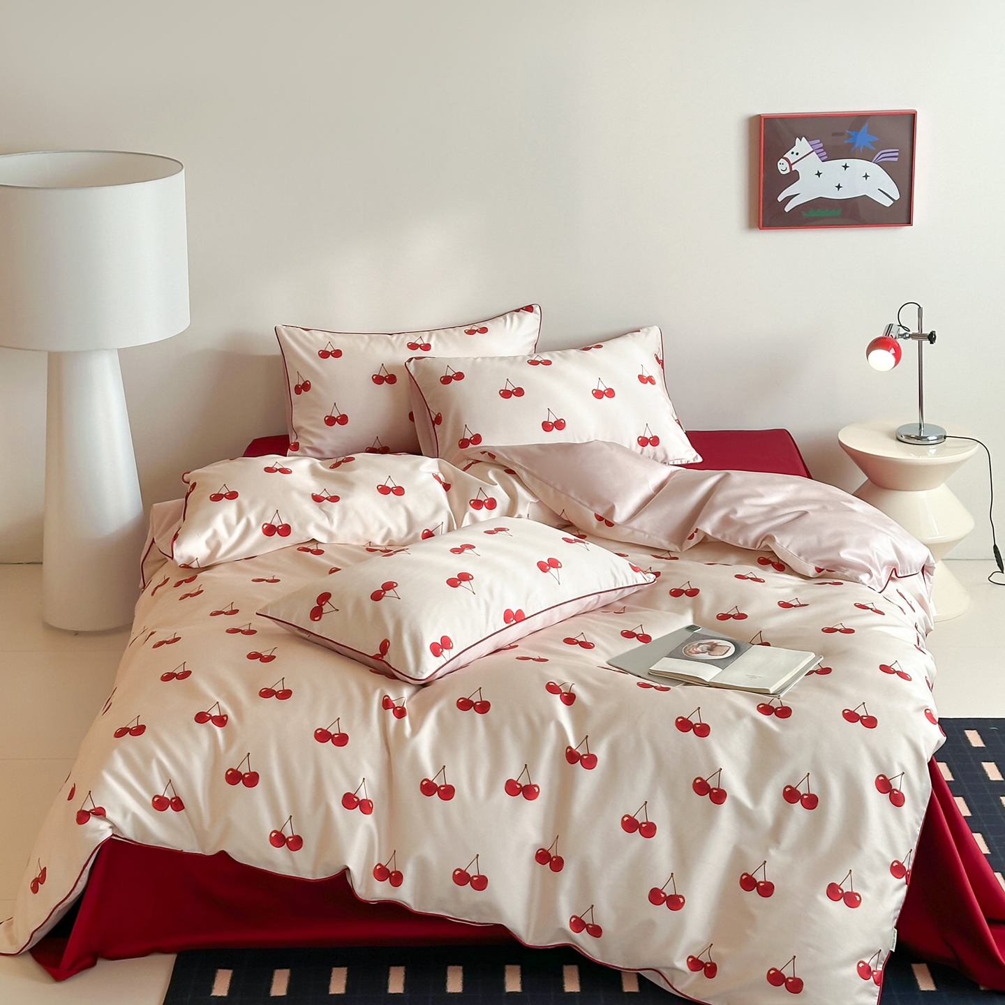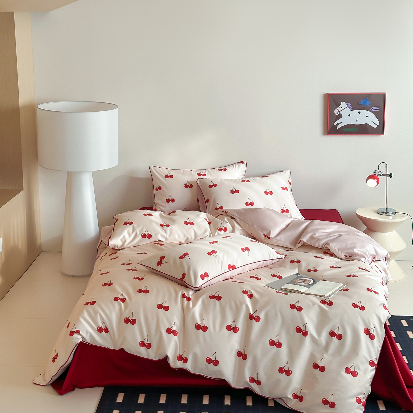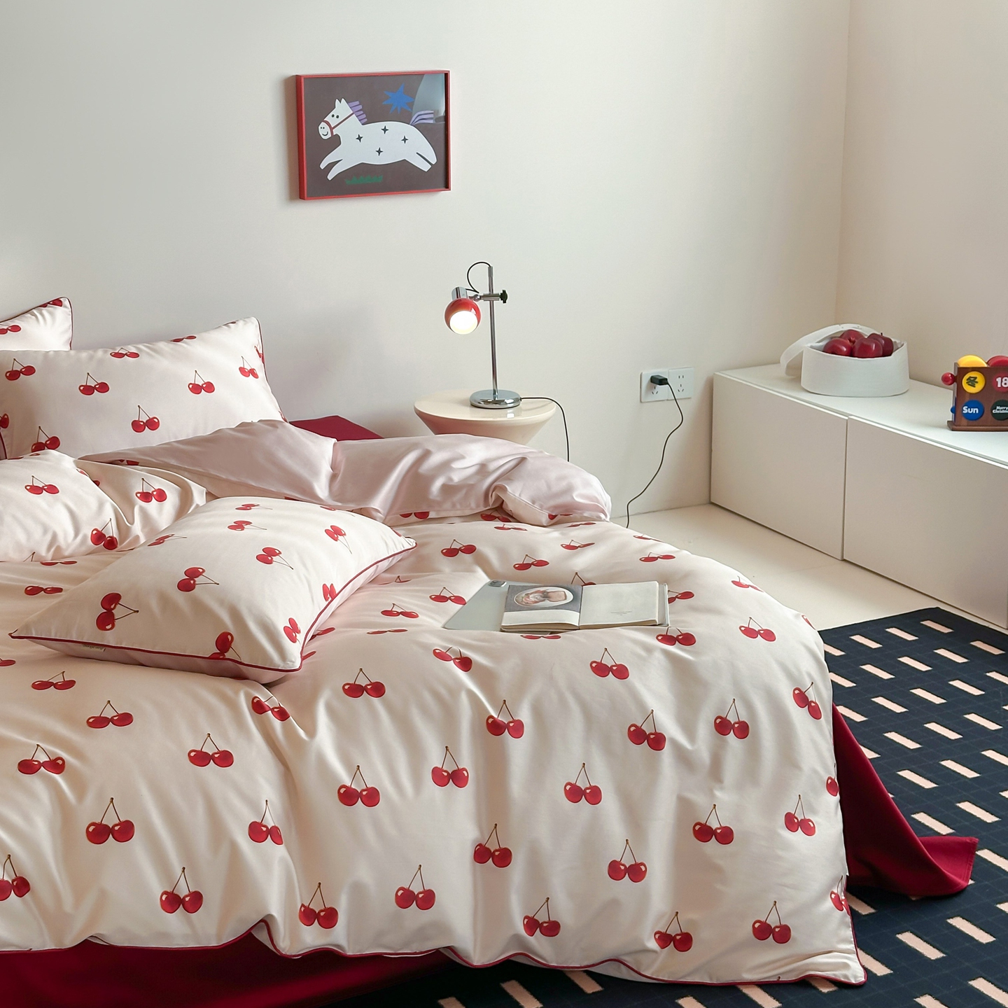当前位置: 91家纺网 > 商品网购 > 床品套件 > 四件套 > 全棉普通四件套 > (总)桔子家纺 2026春夏新款100s全棉纯棉复古樱桃系列四件套-场景一