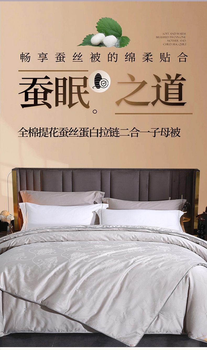 • 91家纺网 家纺一手货源 找家纺 犇牛仓储供应链 2026新款全棉提花蚕丝蛋白拉链二合一子母被被子被芯 玉色