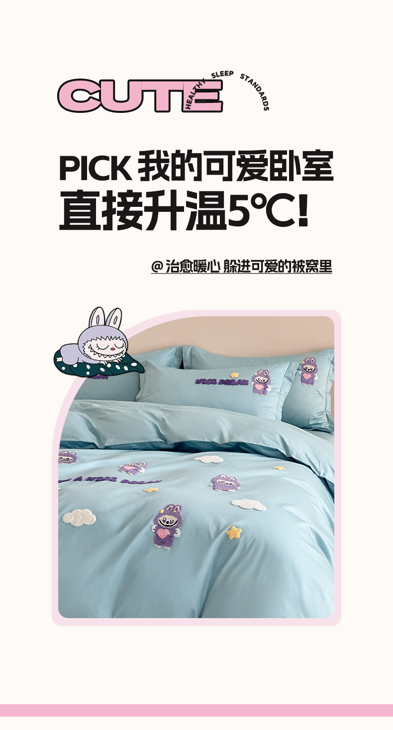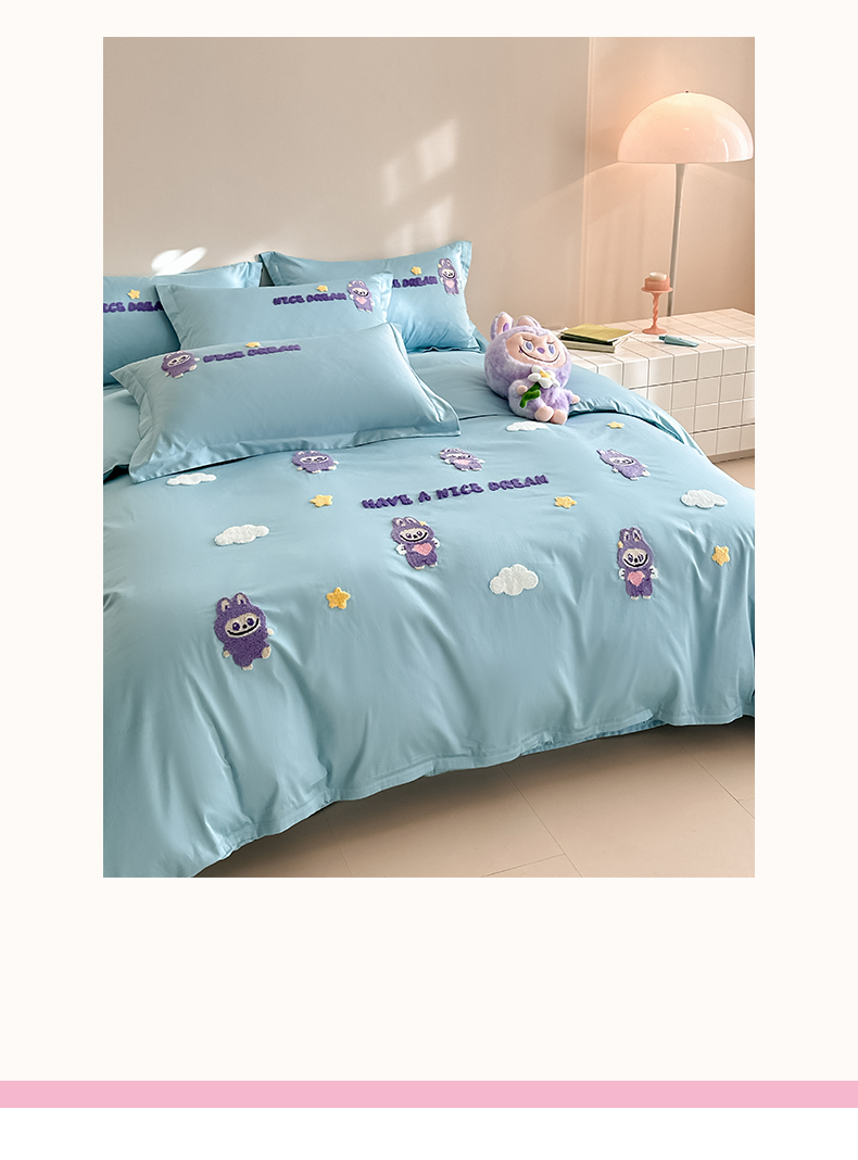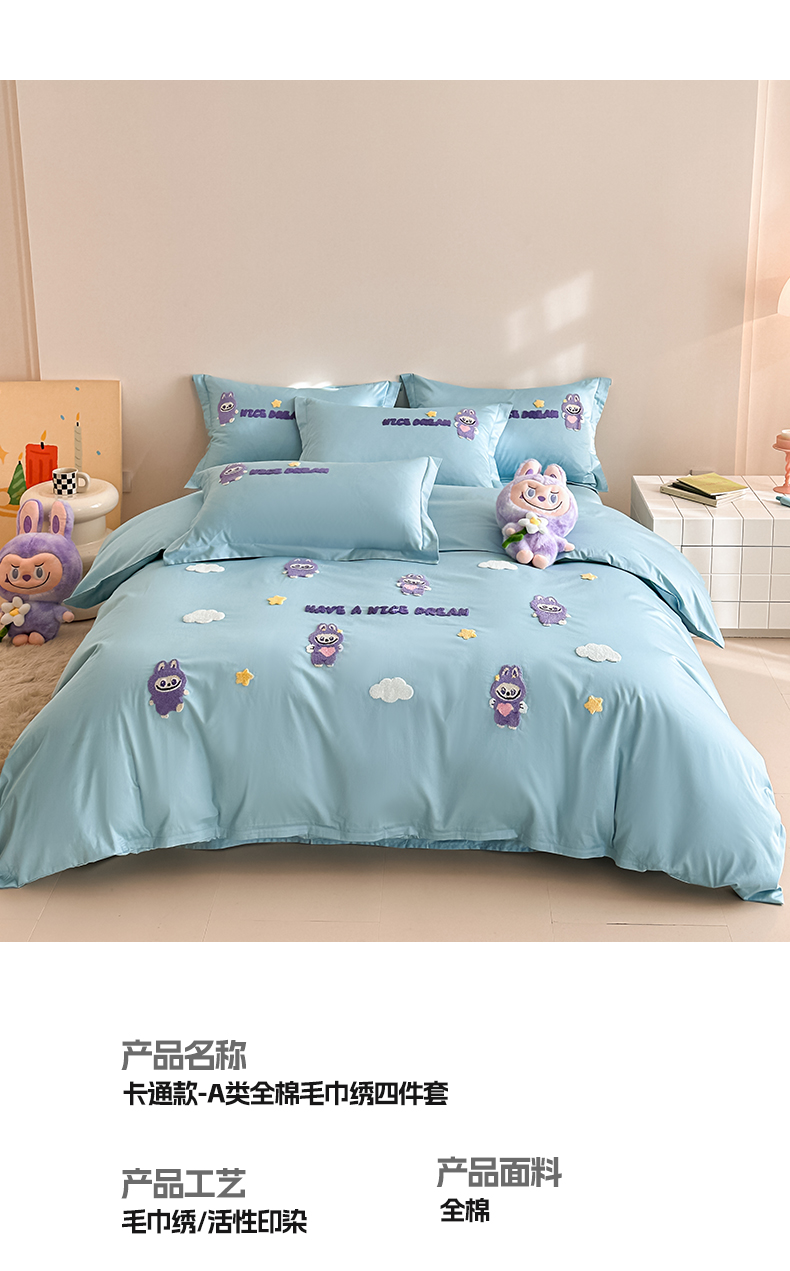 当前位置: 91家纺网 > 商品网购 > 床品套件 > 四件套 > 全棉普通四件套 > 润锦云 2026新款卡通款-A类全棉纯棉毛巾绣四件套 拉布布-蓝