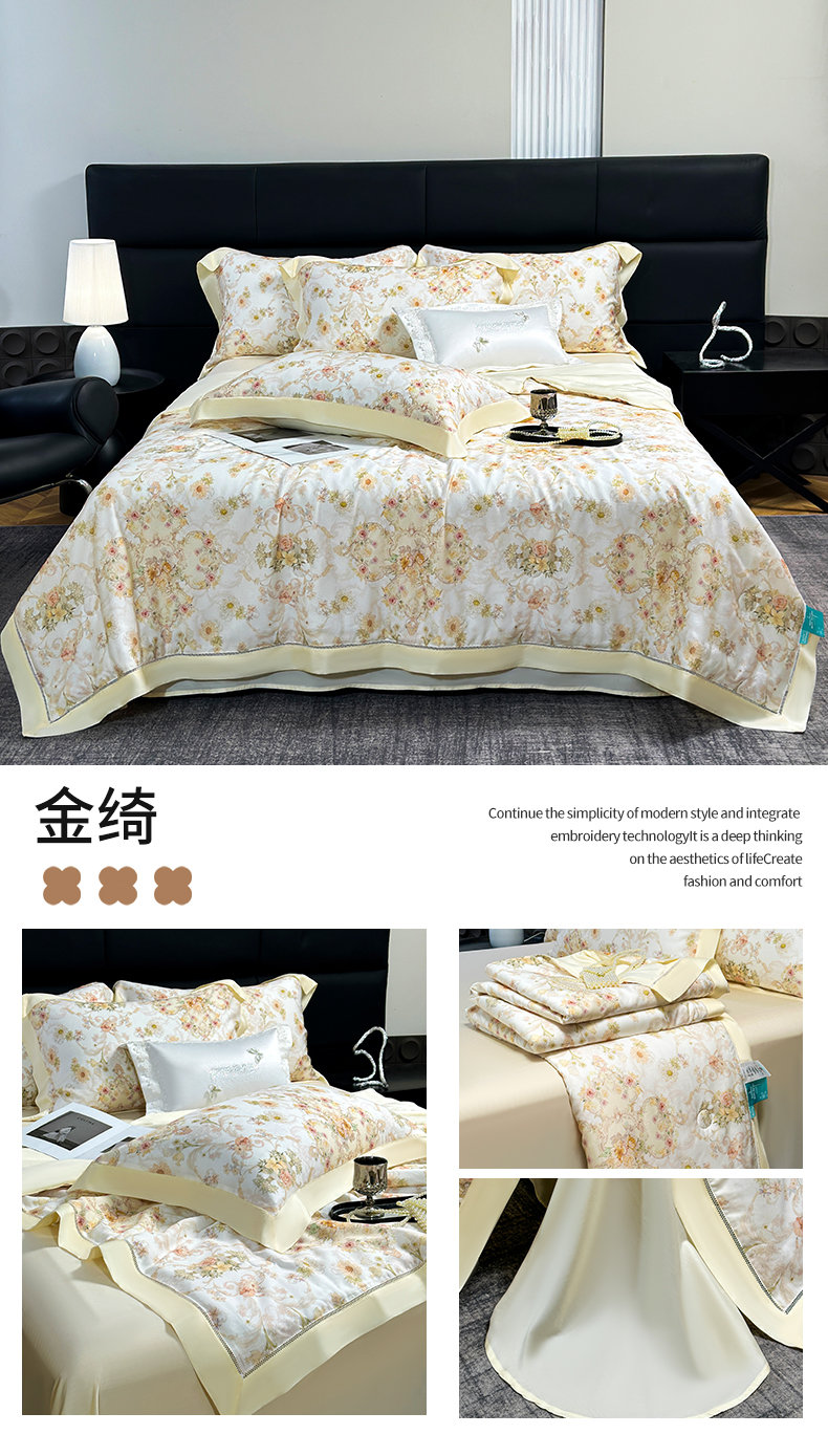 • 91家纺网 家纺一手货源 找家纺 岚司羽 2026春夏新款50天丝夏被四件套夏凉被空调被系列 蔓行