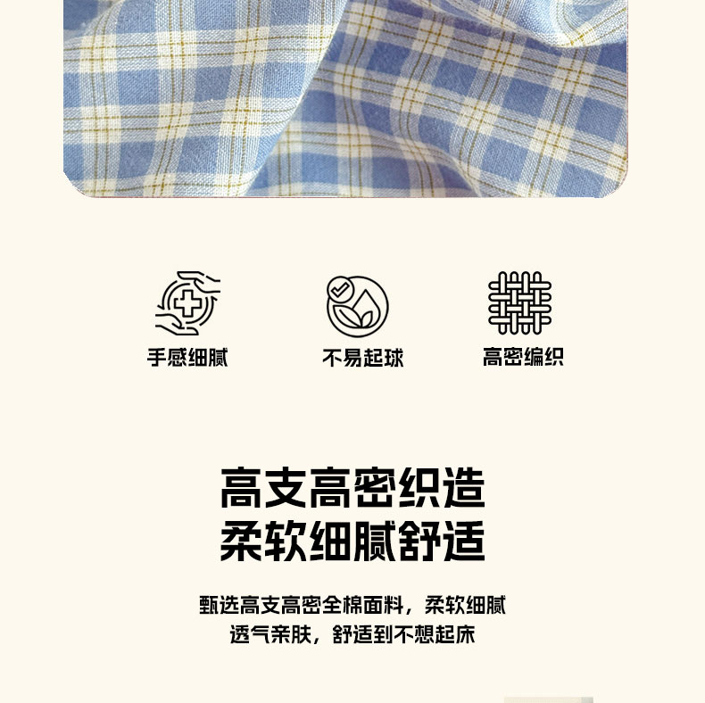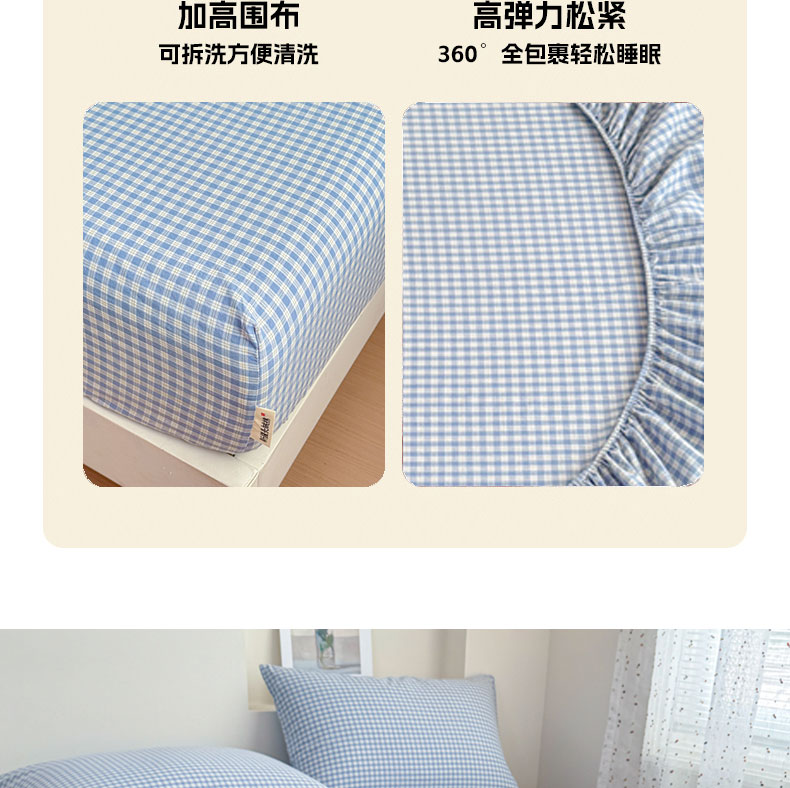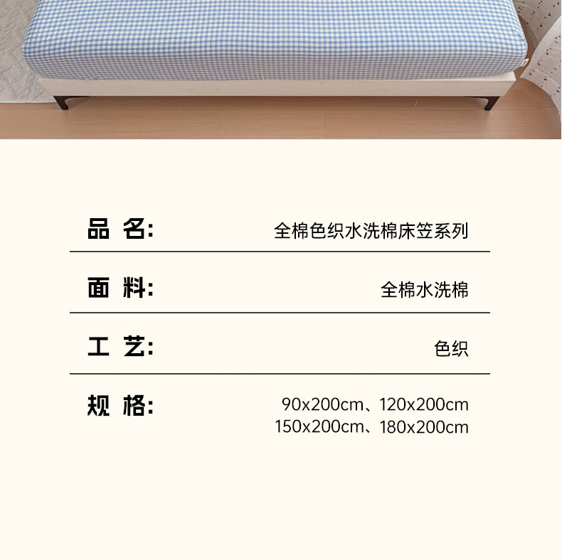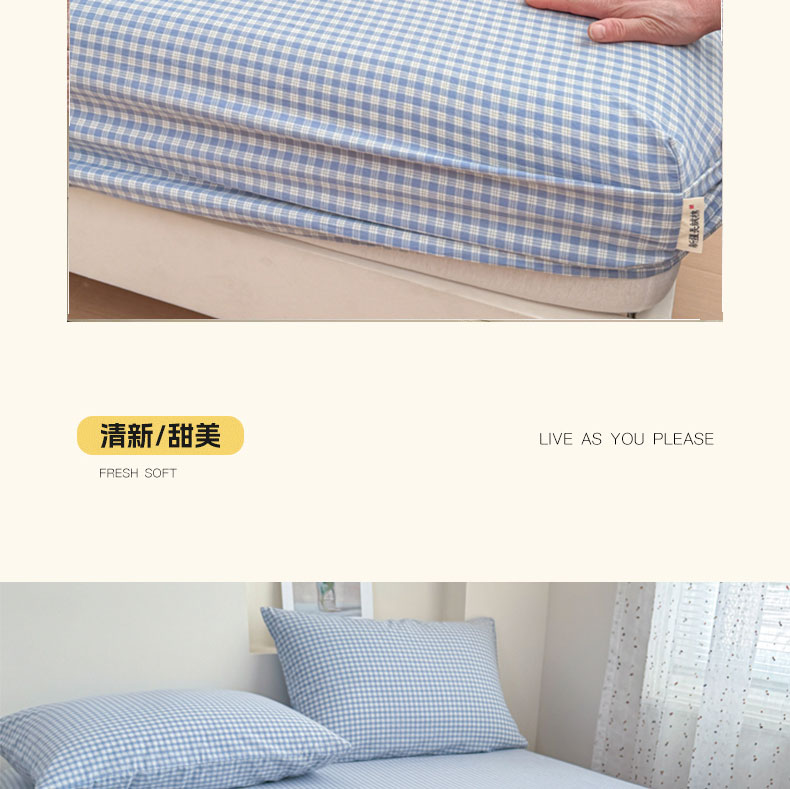 当前位置: 91家纺网 > 商品网购 > 床品套件 > 四件套 > 全棉普通四件套 > 佑佳家纺 2026新款全棉色织床笠款四件套 蓝小格