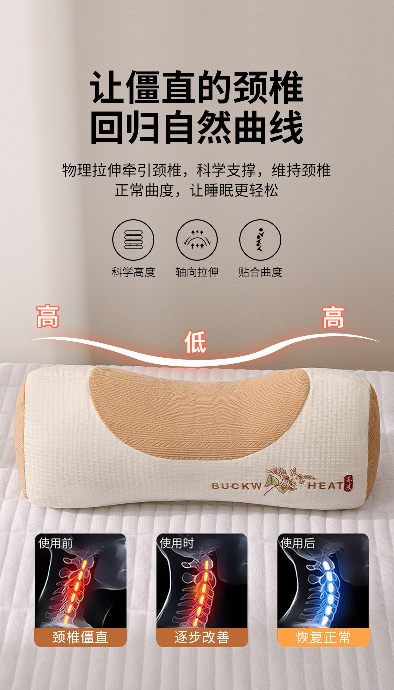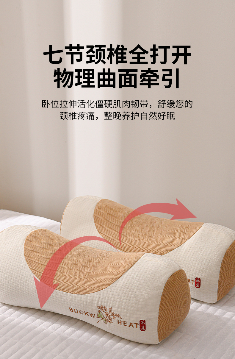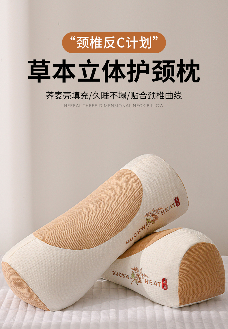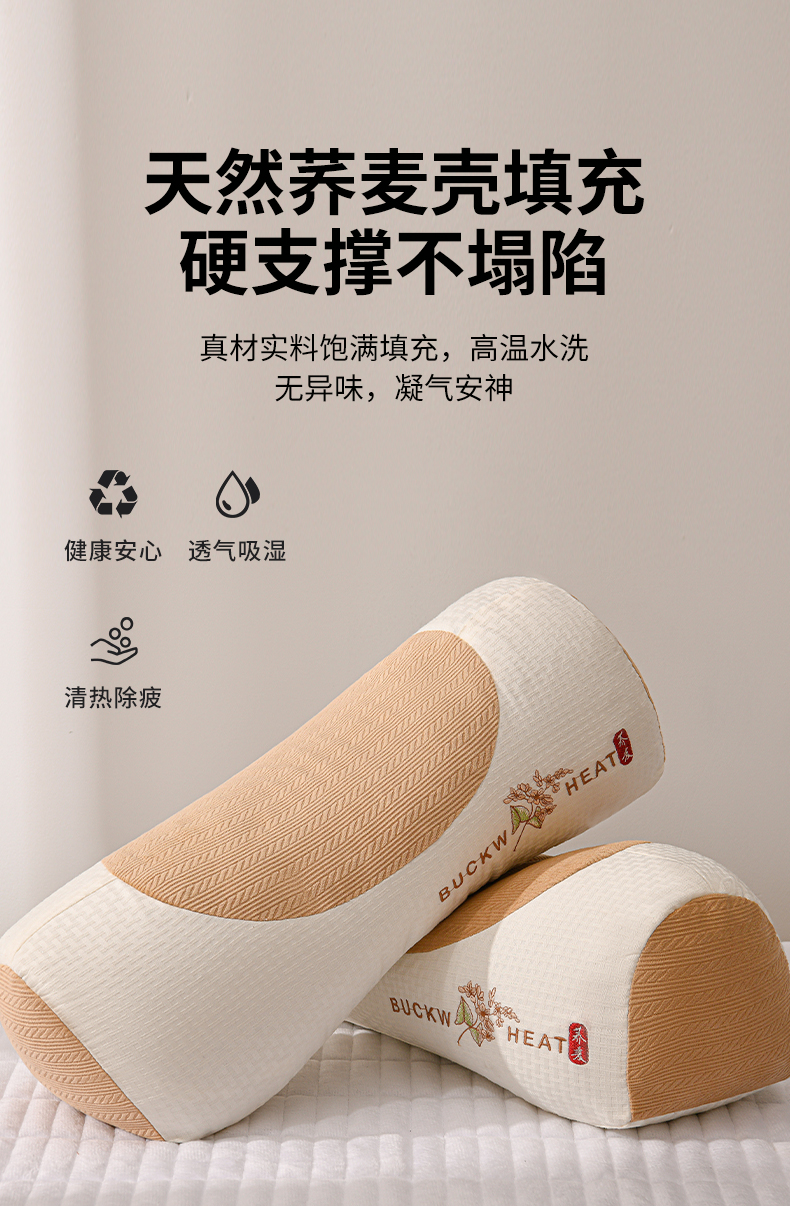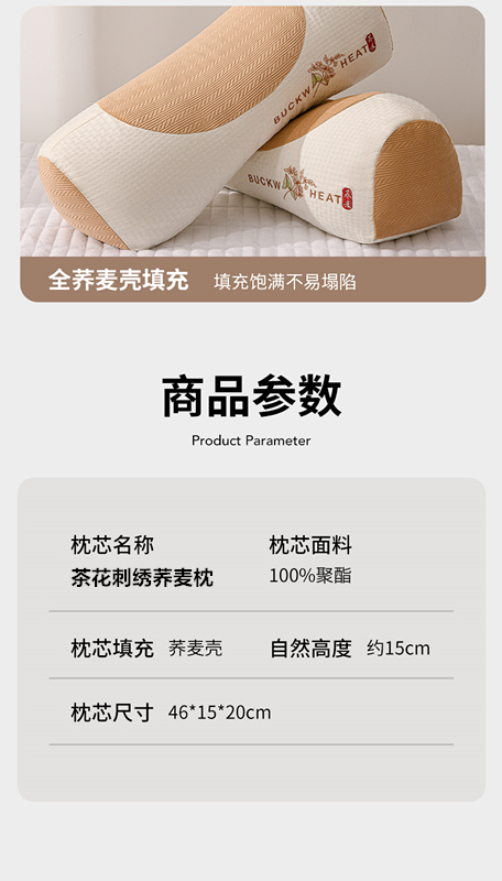商品名称:(总)小桃姐家纺 2025新款山茶花刺绣 圆柱元宝枕荞麦枕芯护颈枕枕头