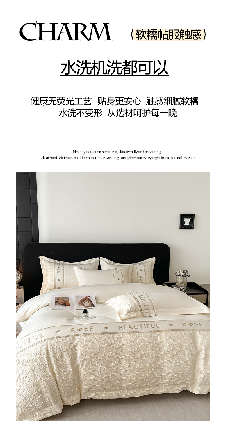 (总)七七家纺 2025新款水洗棉刺绣四件套梦见系列,梦见豆沙,梦见粉,梦见黄,梦见蓝,梦见紫