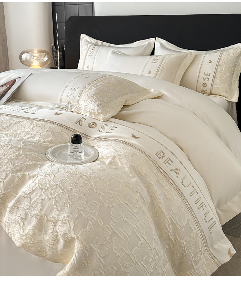 (总)七七家纺 2025新款冰丝刺绣款四件套幽兰系列,幽兰白,幽兰粉,幽兰灰,幽兰蓝,幽兰紫