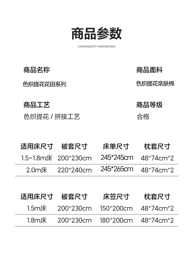 商品名称:(总)七七家纺 2026新款色织提花花田系列四件套