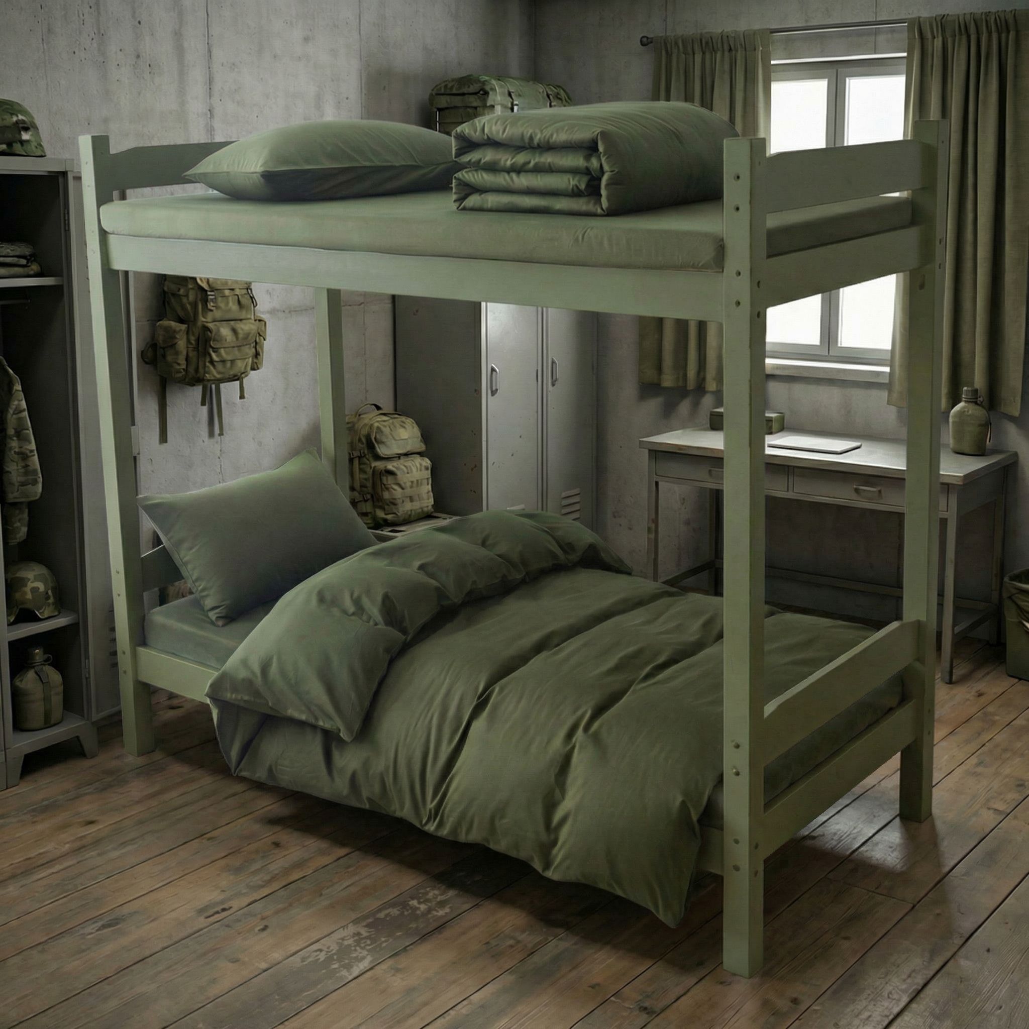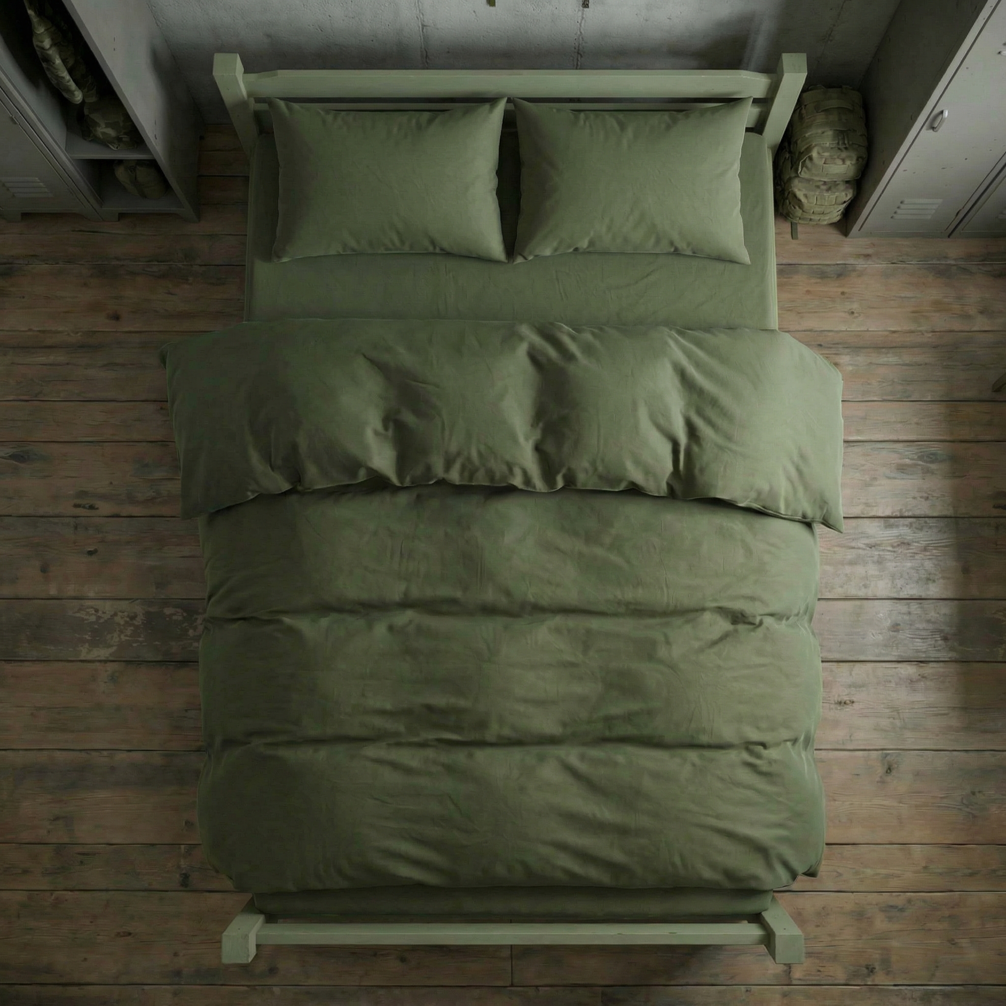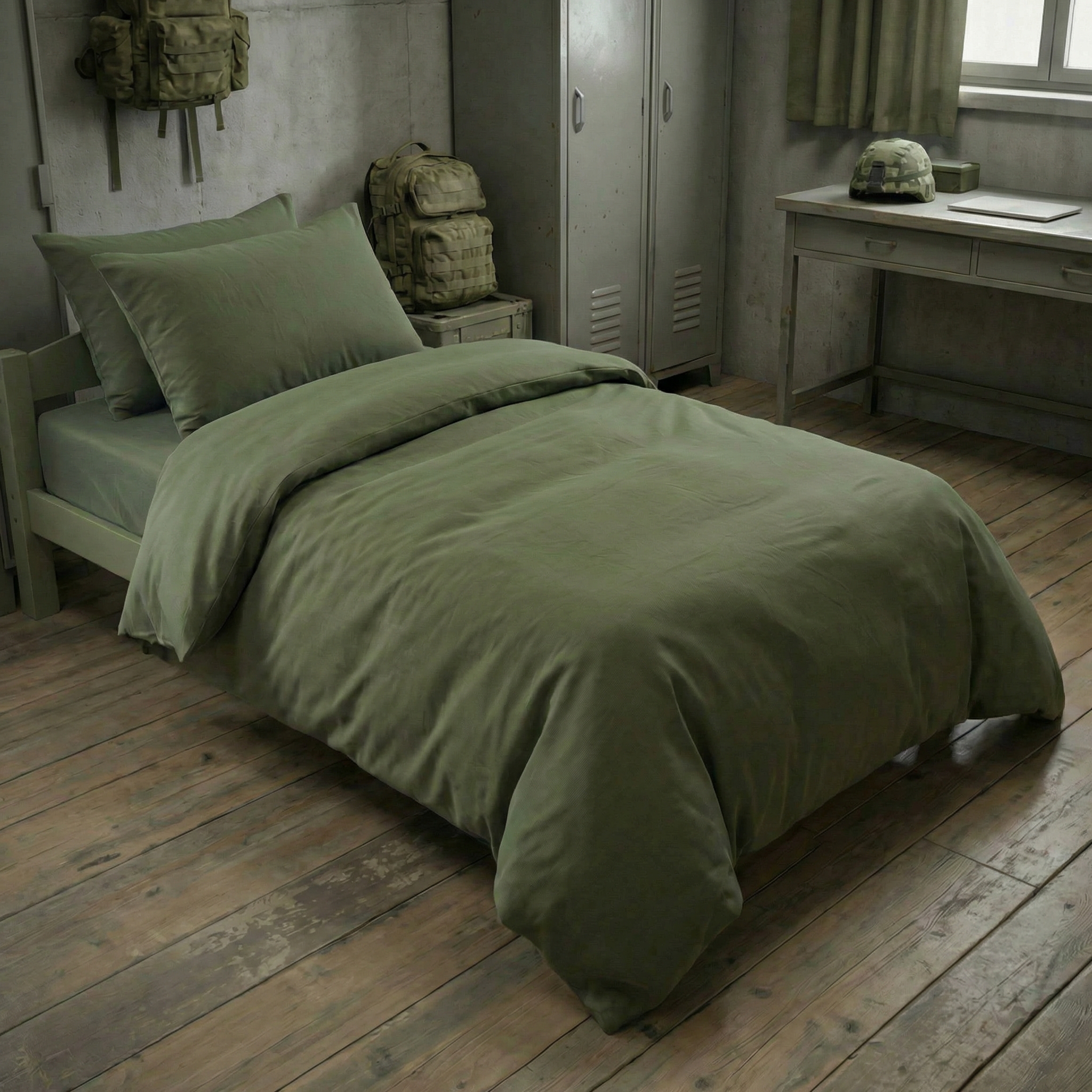 商品名称:(总)锦兴酒店布草 2026新款13372军绿色全棉纯棉学生三件套