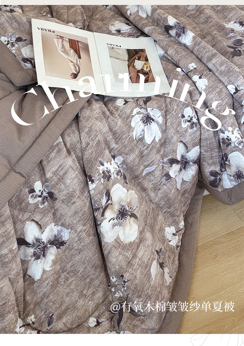 商品名称:中国龙家纺 2026新款木棉皱皱纱单夏被被子被芯 摩卡花事