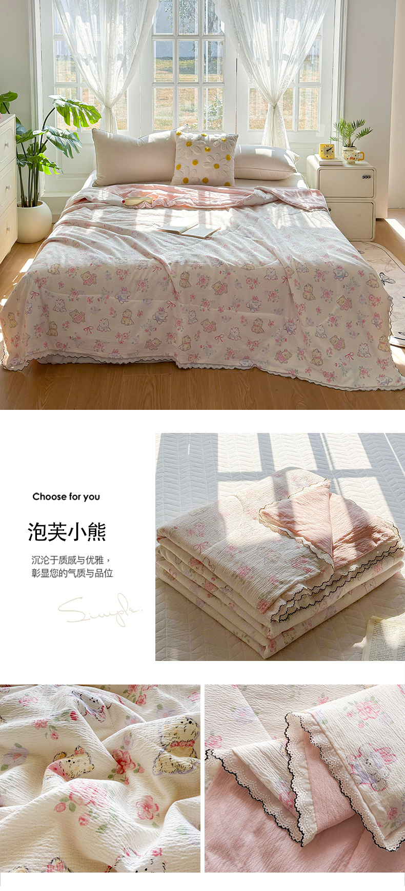 • 91家纺网 家纺一手货源 找家纺 (总)云玲时尚 2026新款木棉皱皱纱夏被被子被芯,饼干熊,花惜止,快乐小马,满园春紫,泡芙小熊,兔宝果园