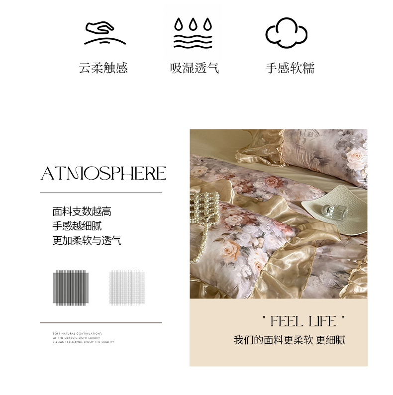 商品名称:(总)艾米家居 2026春夏新款裙边款法式天丝棉冰丝系列四件套提供买家秀